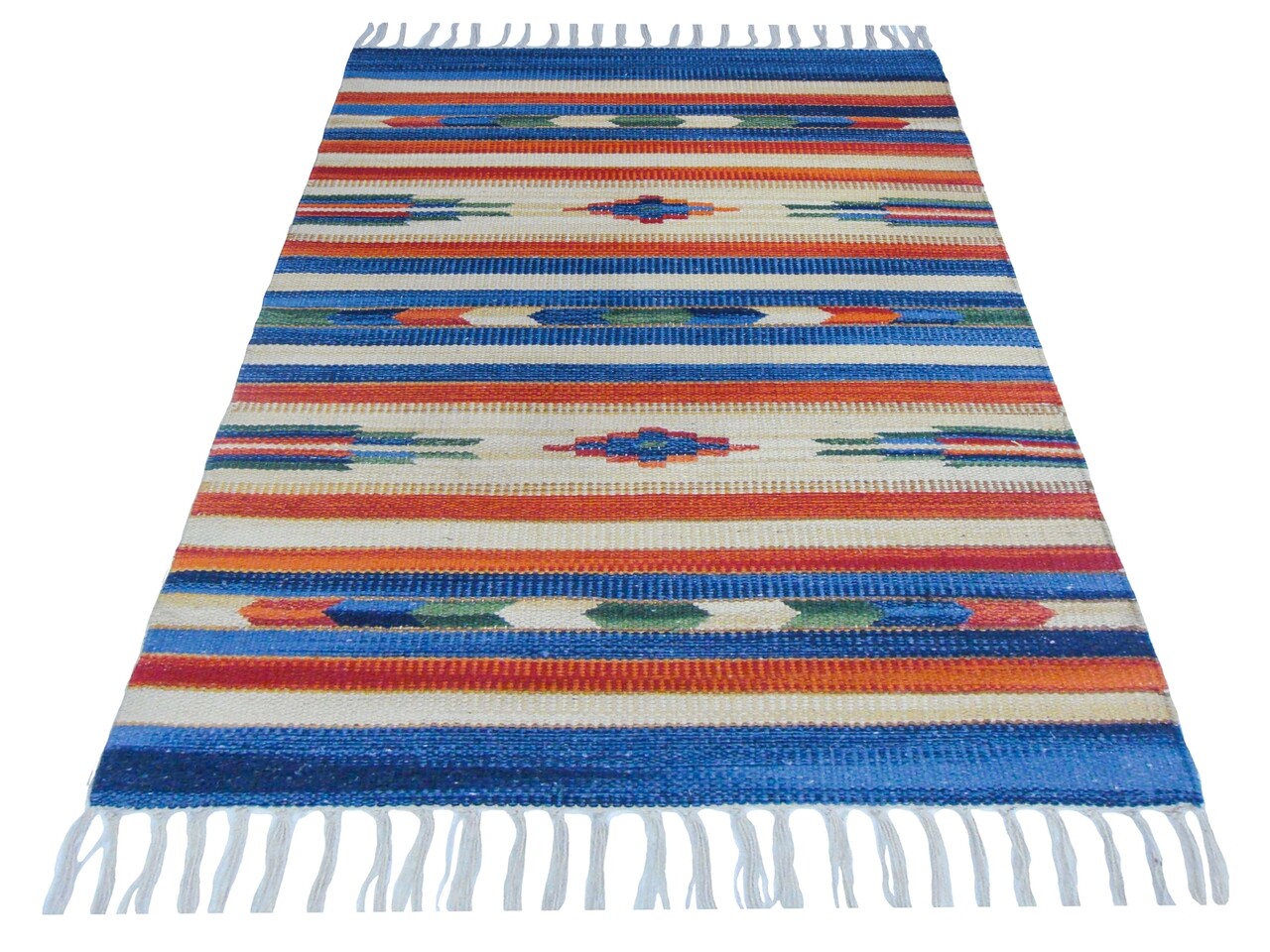Covorul Country 182 de la Bakero este un covor kilim cu model mexican care iti va lumina casa. Acest produs este foarte popular in toata Europa. Covorul este tesut manual din 100% bumbac. Se termina cu franjuri pe ambele parti. Fabricat in India.