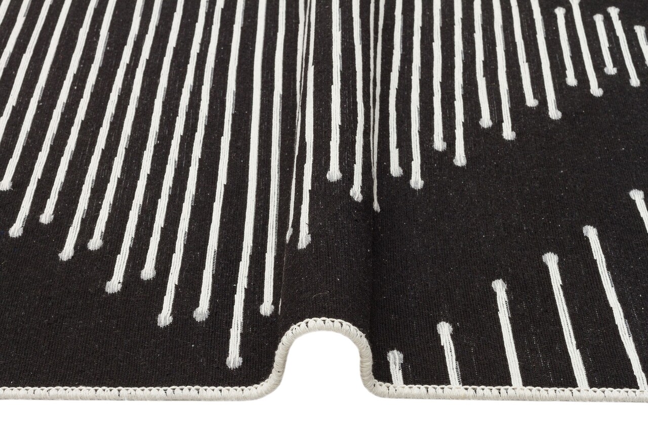 Covor Kilim cu 2 fete, Arya 15 Black, Baketo, 100% bumbac reciclat, 80x150 cm