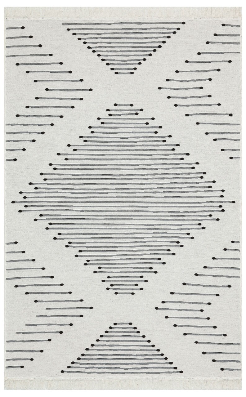 Covorul are doua fete si este produs la masina din 100% bumbac reciclat. Inaltimea lui este de 0,5 cm, deci este potrivit si pentru incaperile cu incalzire prin pardoseala. Fabricat in Turcia.