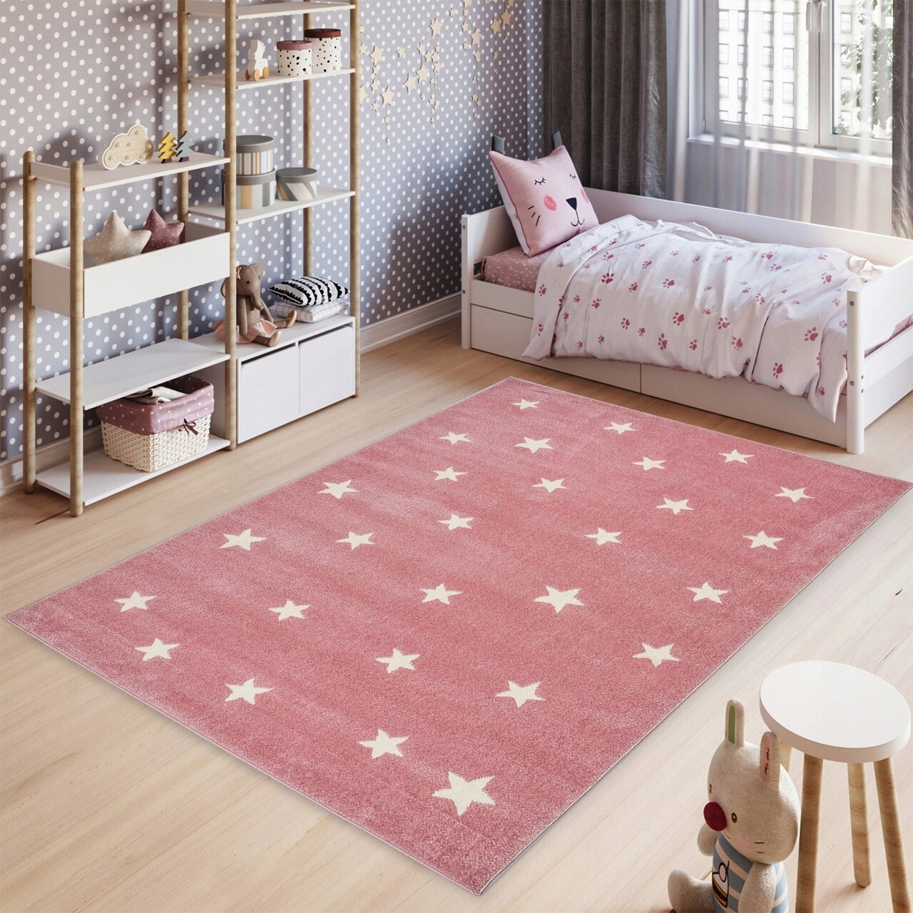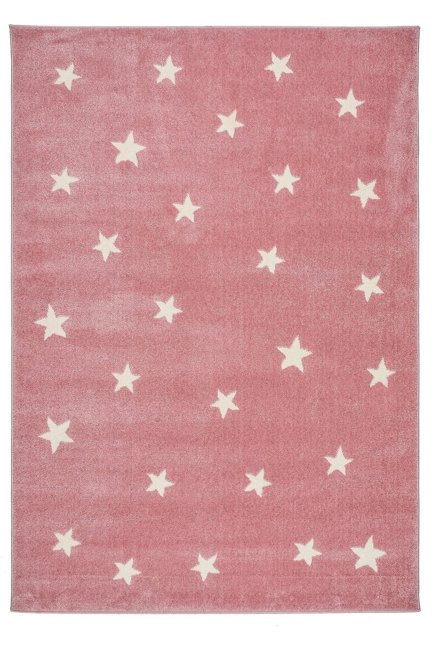 Covor, Küçük Yıldız, 100x200 cm, Polipropilena, Roz/Alb