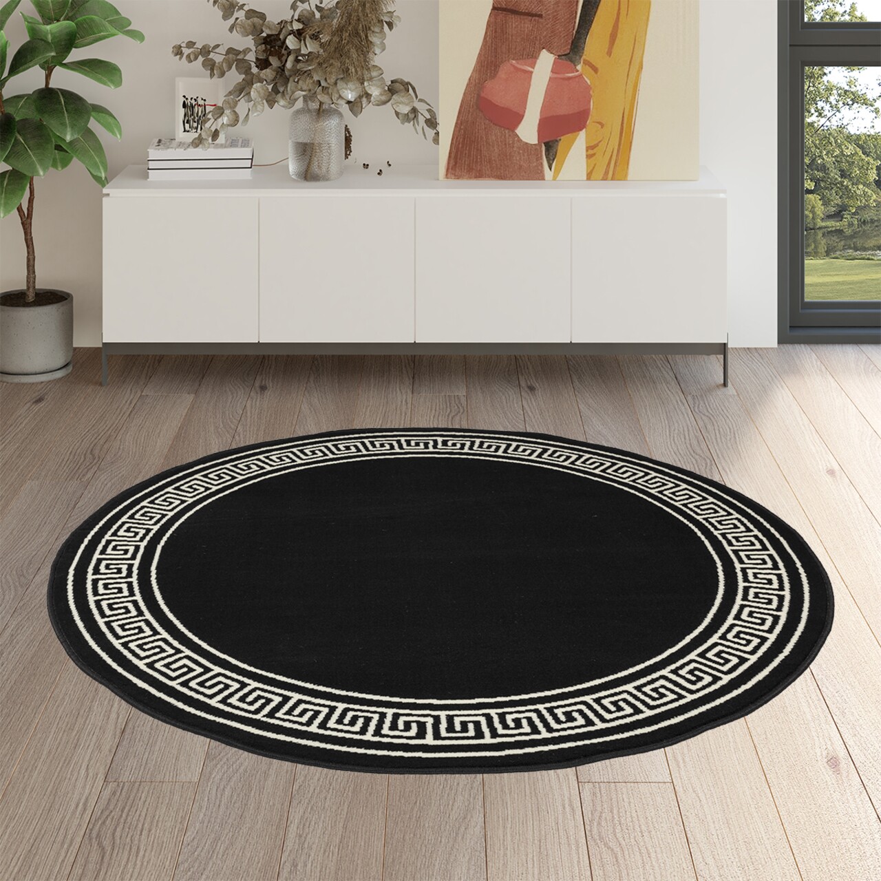Covor Mephis, Decorino, 120x120 cm, polipropilena, negru/gri
