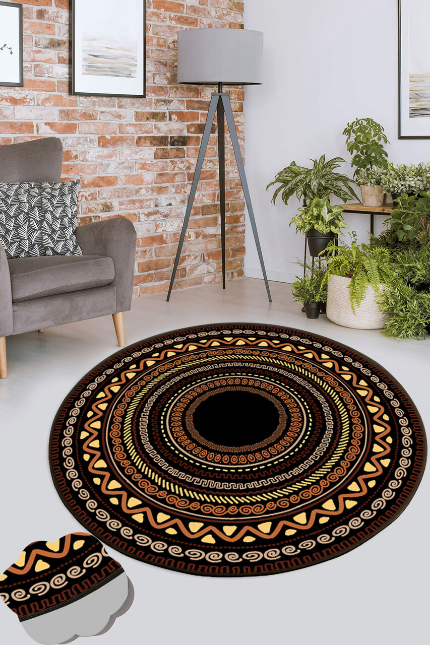 Covor, Mistik Mandala Çap 100X100 , 50% TESTURĂ DE catifea/ 50% POLIESTER, Multicolor