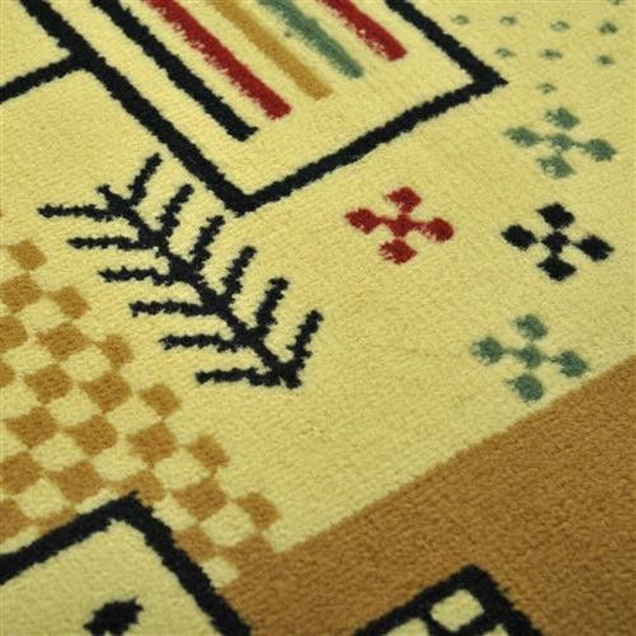 Motive naturale, animaliere si inspirate din vegetatia luxurianta dar si motive abstracte fac obiectul designului acestui minunat produs. Culorile calde, bej, crem, maro, si pe alocuri cate un zig zag albastru sau verde, si cate un chenar negru cu dungi de diferite dimensiuni si culori, il fac atractiv exprimand caldura si joaca.