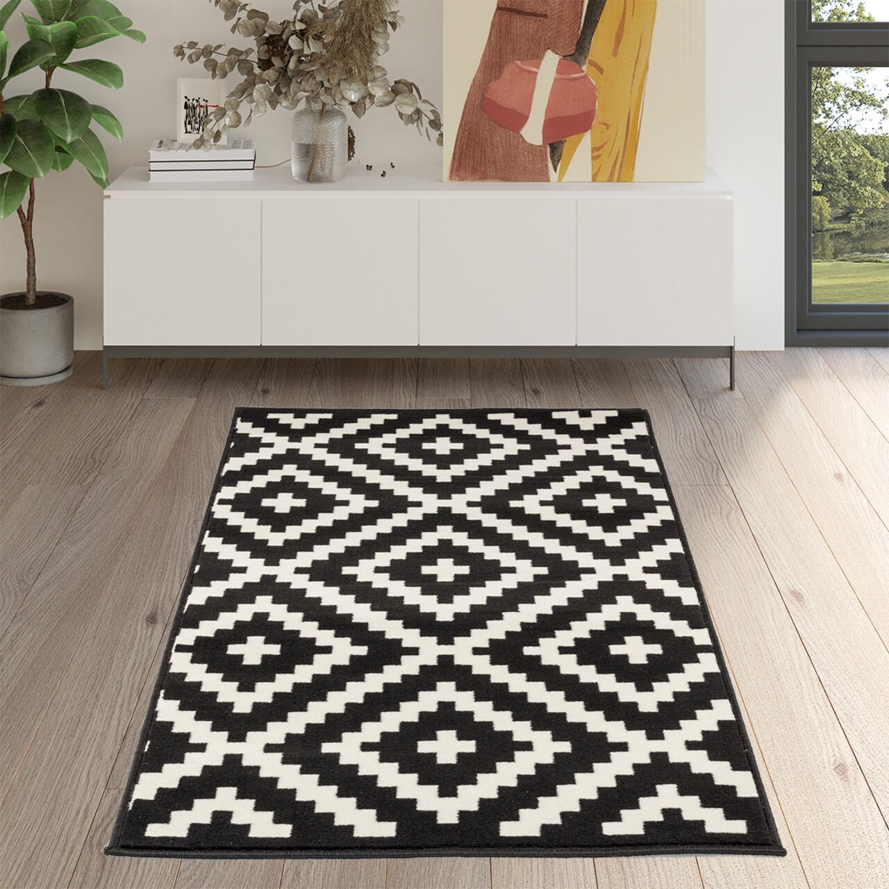 Covor Pambus, Decorino, 80x150 cm, polipropilena, negru/alb