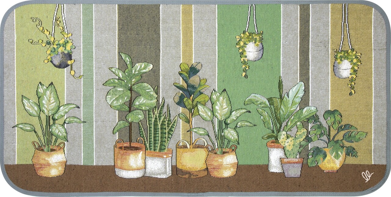 Covor pentru bucatarie, Olivo Tappeti, Carpet Queen 2, Plants, 55 x 270 cm, 80% bumbac, 20% poliester, multicolor
