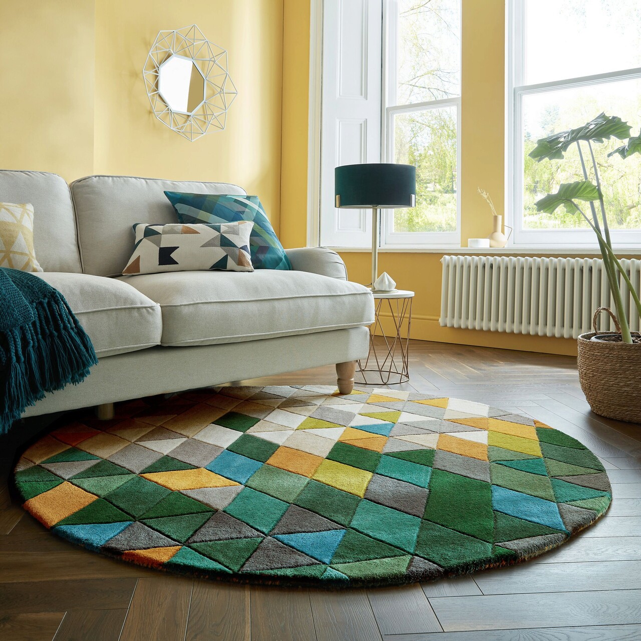 Covor Prism Green/Multi, Flair Rugs, D160 cm, lana, verde/multicolor