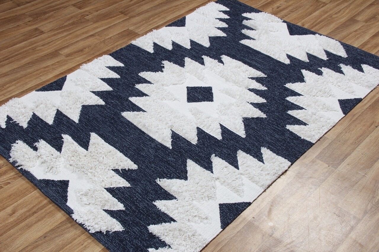 Covor rezistent Eko, AFR 01 - Navy, White, 100% bumbac, 120 x 180 cm