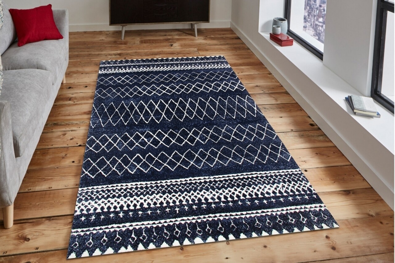 Covor rezistent Eko, EX 05 - Navy, White, 100% poliester, 120 x 170 cm