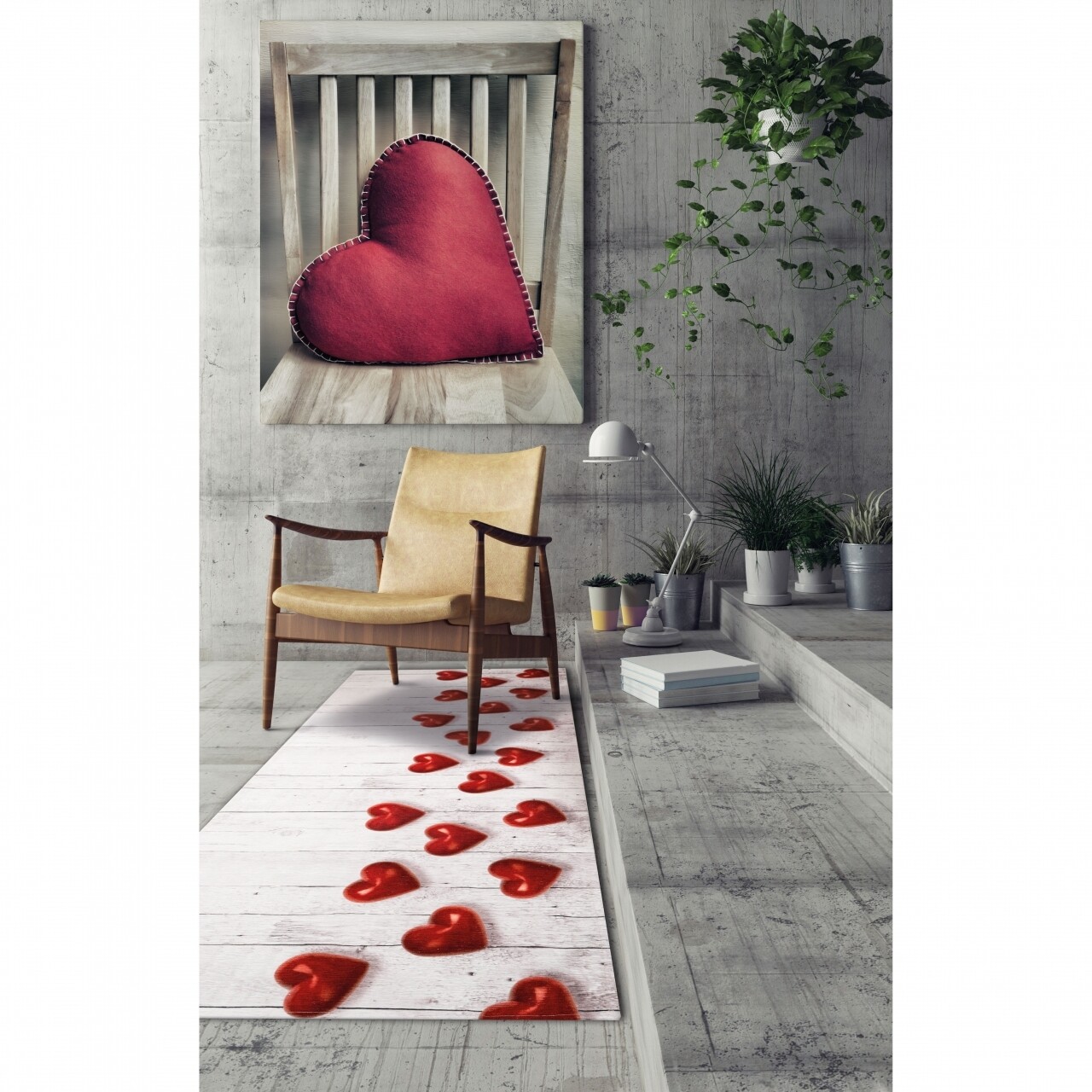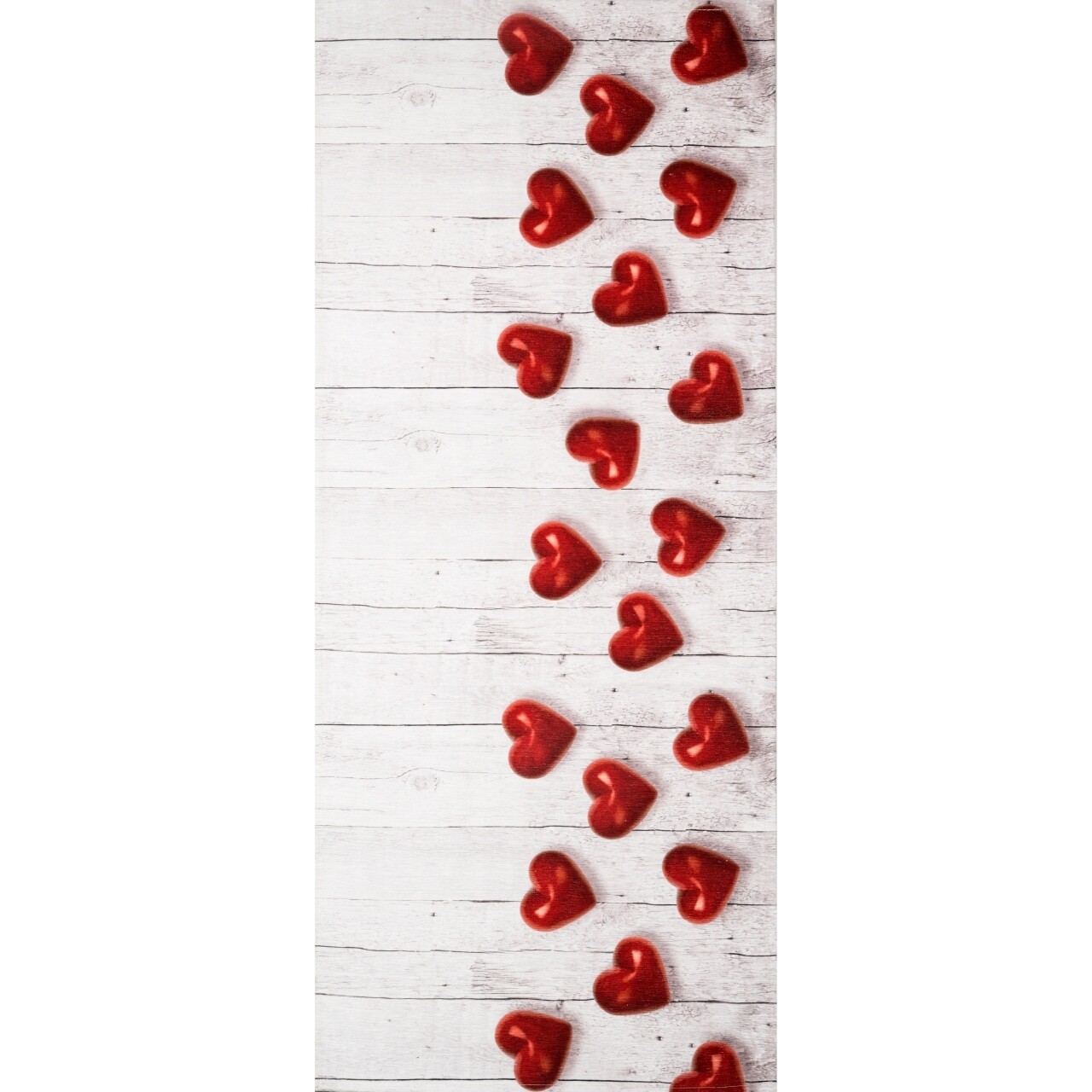 Covor rezistent Webtappeti Cuori Rossi 58x140 cm, bej/rosu