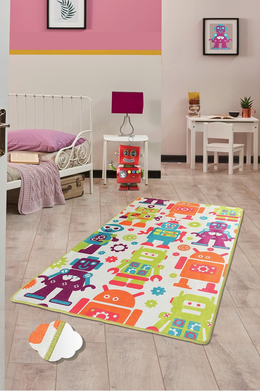 Covor, Robot , 140x190 cm, Catifea, Multicolor