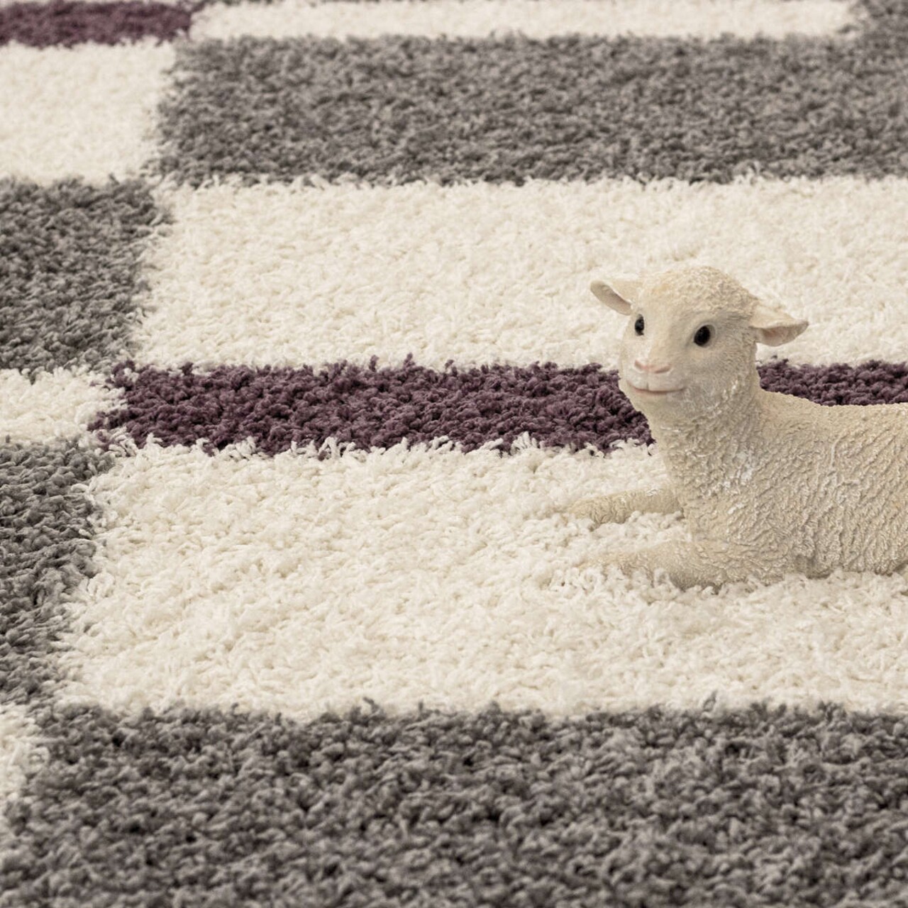 Covor Shaggy Kenya, Purple Line, Decorino, 140x200 cm, polipropilena, multicolor