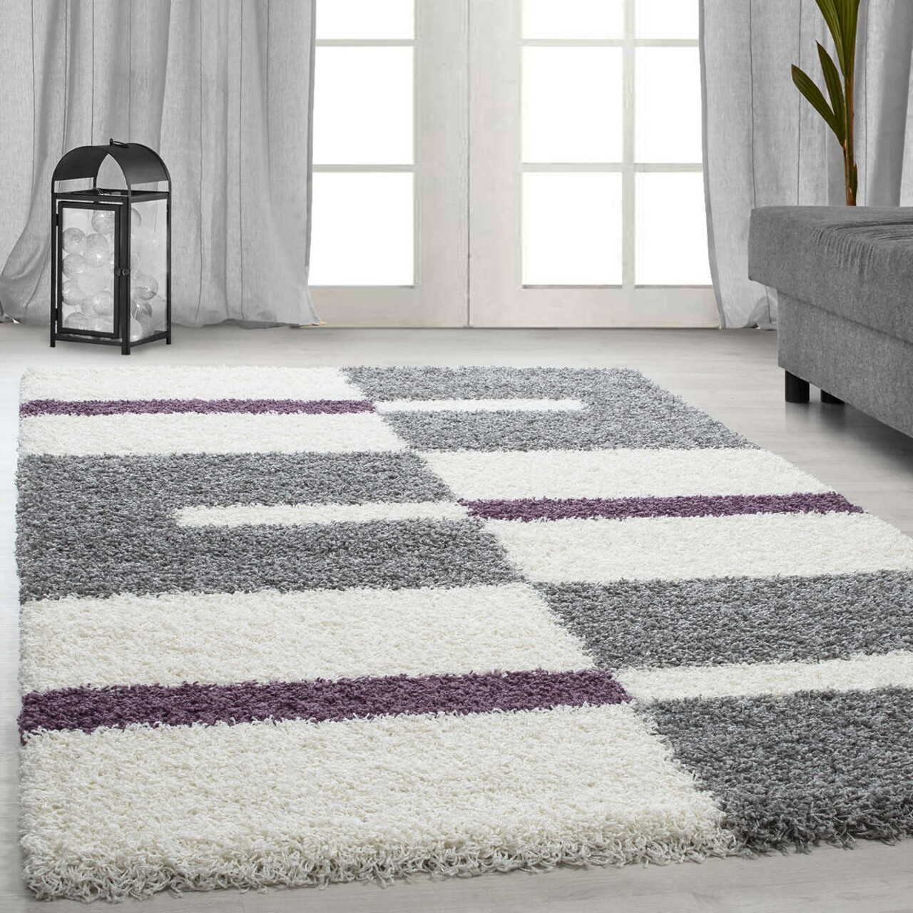 Covor Shaggy Kenya, Purple Line, Decorino, 60x110 cm, polipropilena, multicolor