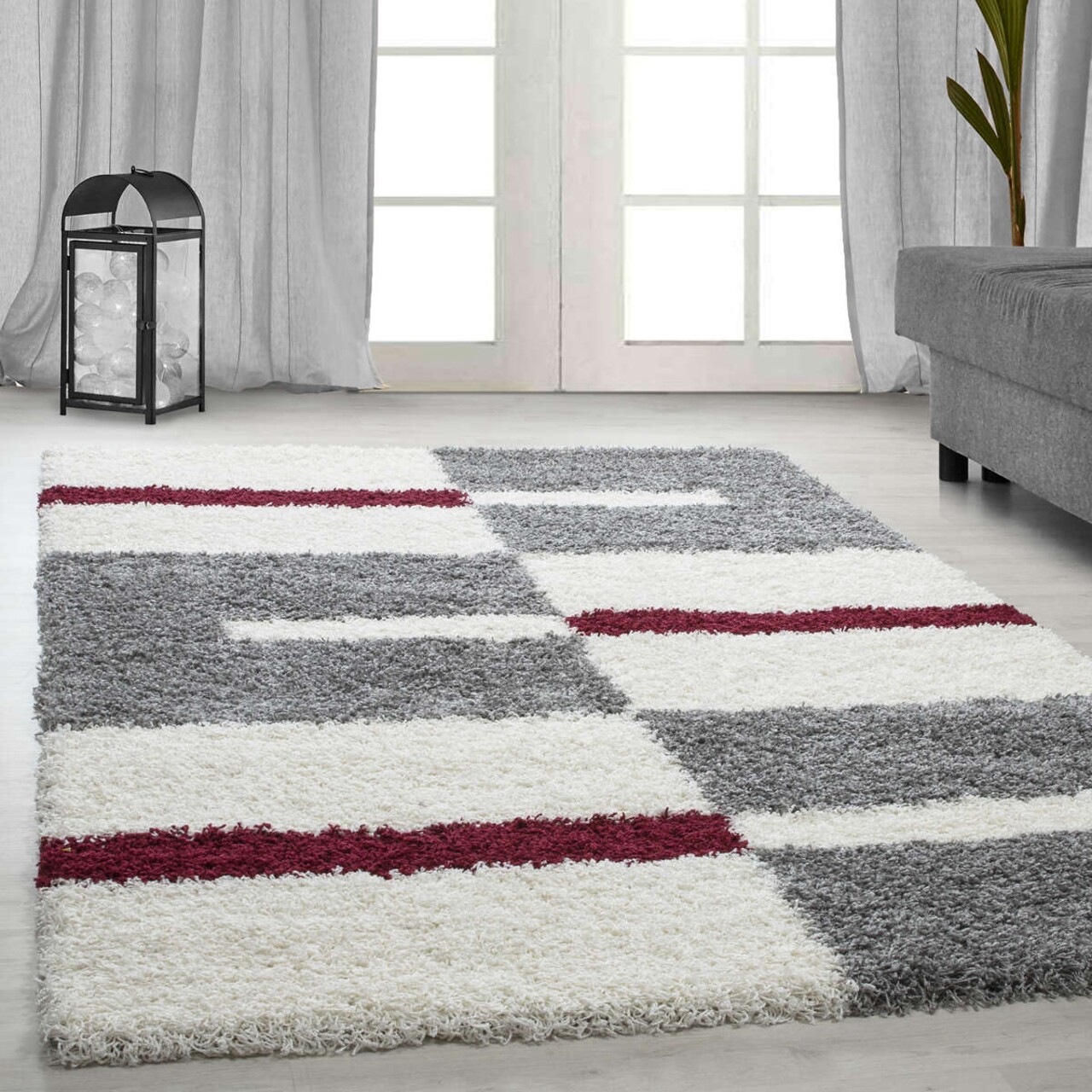 Covor Shaggy Kenya, Red Line, Decorino, 60x110 cm, polipropilena, alb/gri