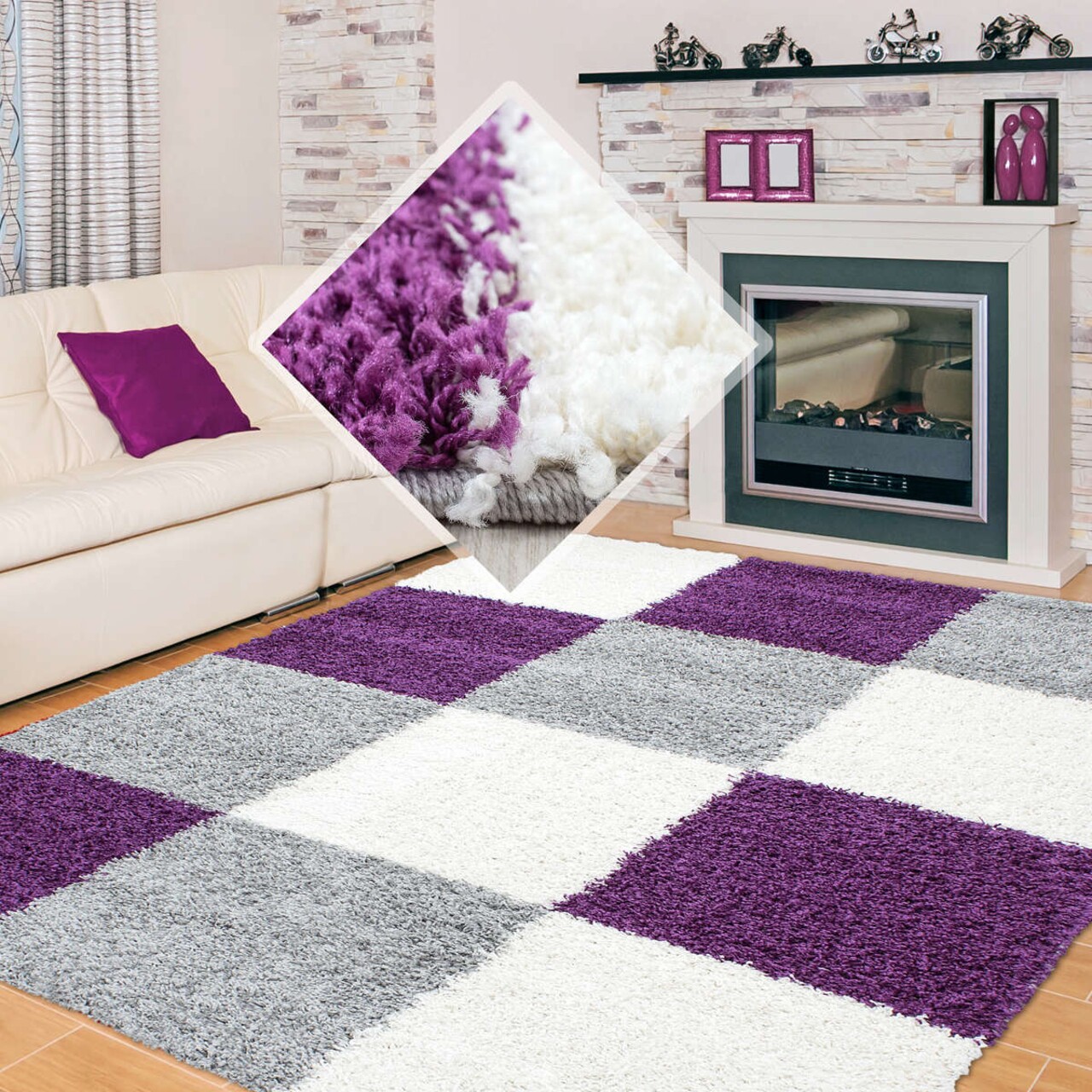 Covor Shaggy Louis, Decorino, 200x290 cm, polipropilena, alb/mov