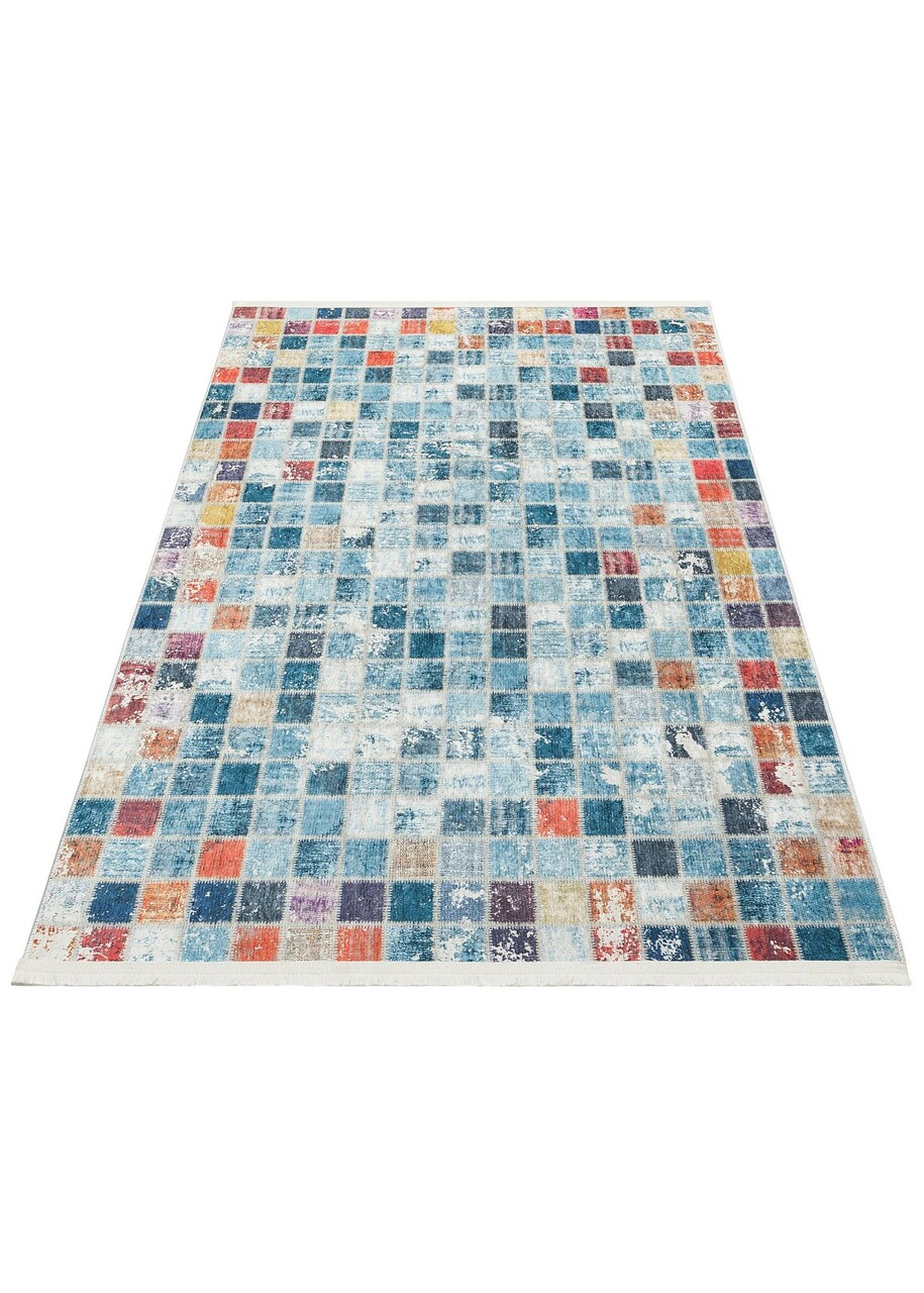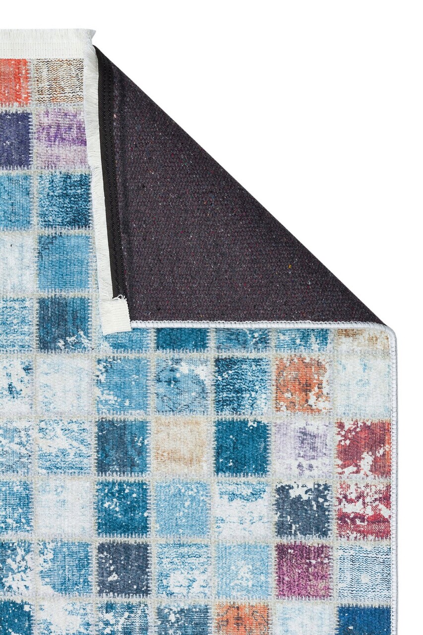 Covor, Sno 204, 80x150 cm, 100% Bumbac/Poliester, Albastru