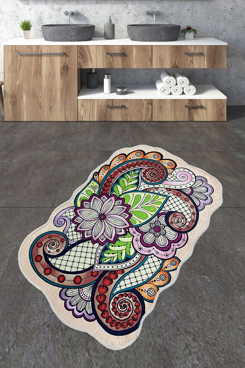 Covoras de baie, Chilai, Forme, 70x120 cm, Poliester, Multicolor