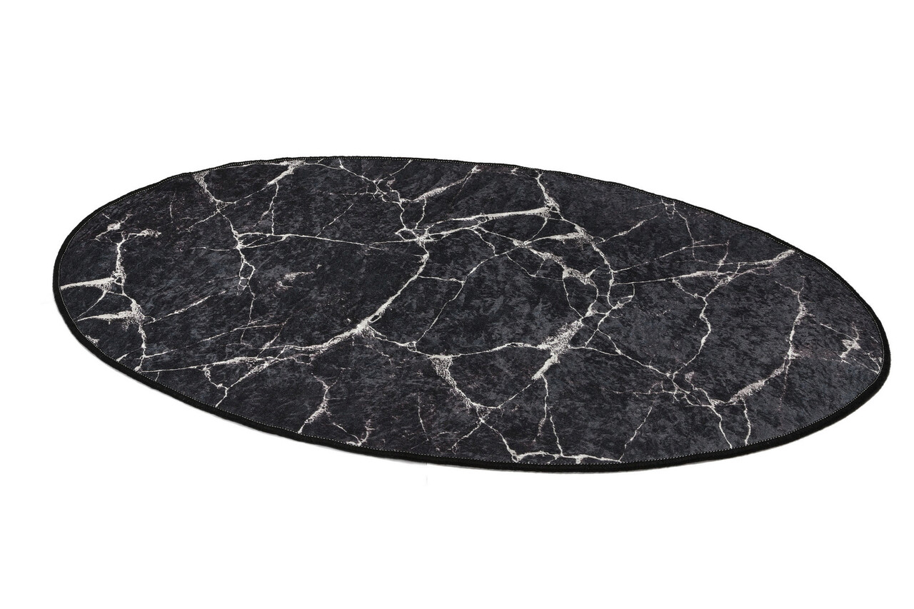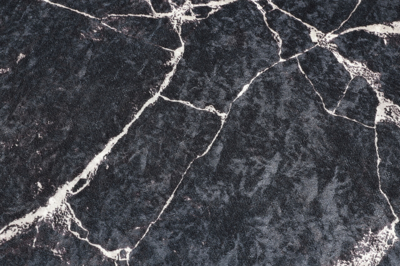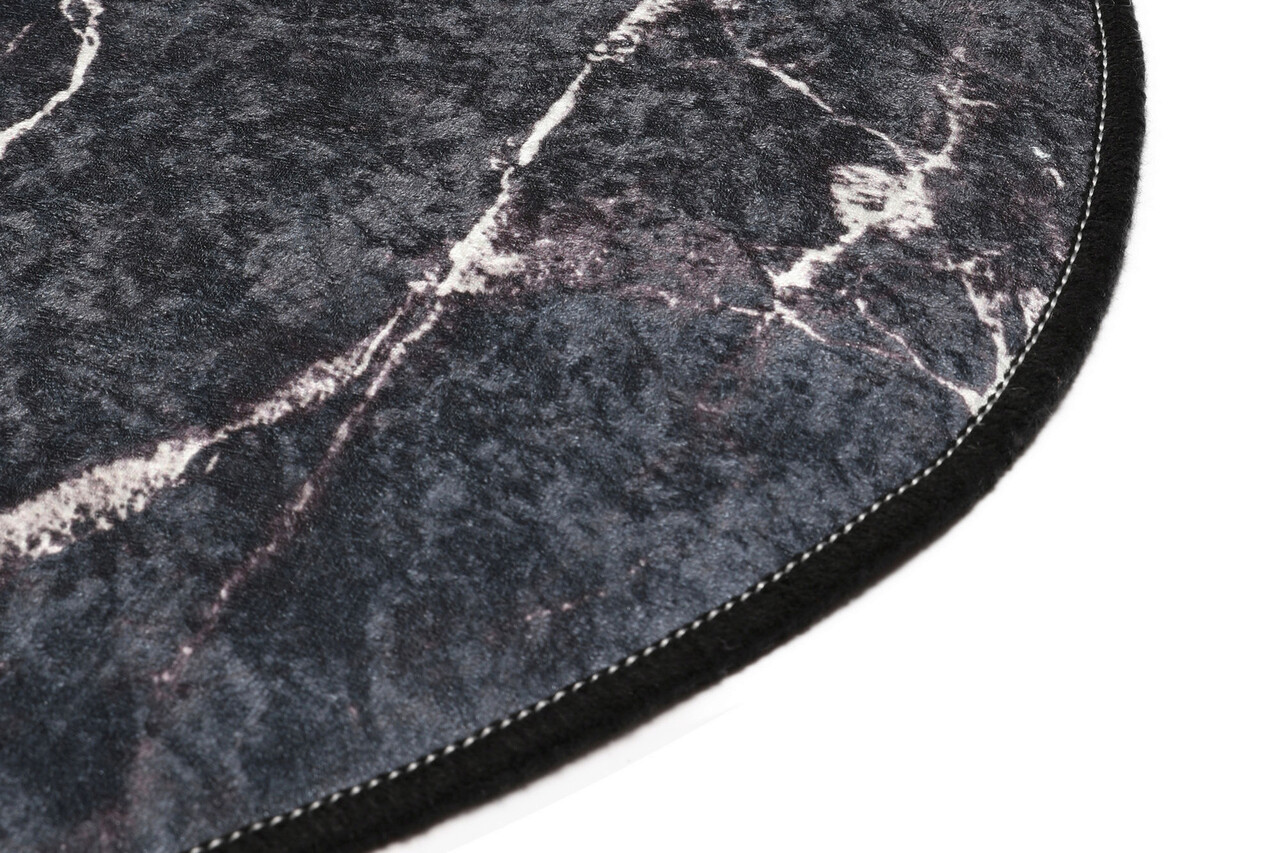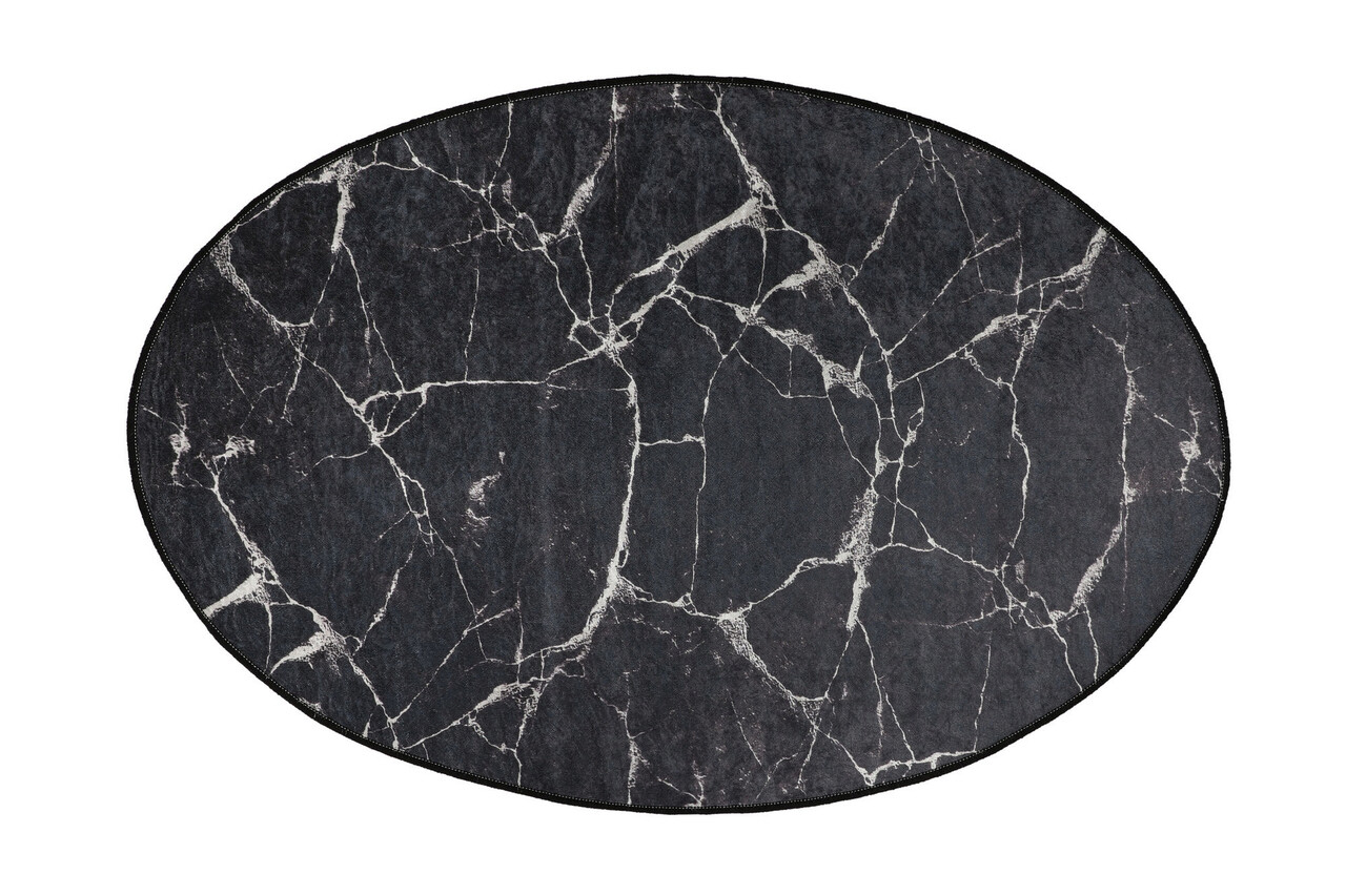 Covoras de baie, Chilai, Marble DJT, 80x120 cm, Catifea, Negru / Bleumarin / Alb