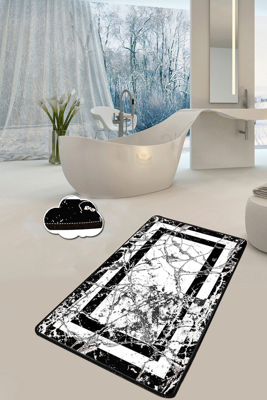 Covoras de baie, Chilai, Marmor, 80x100 cm, Catifea, Alb/Negru