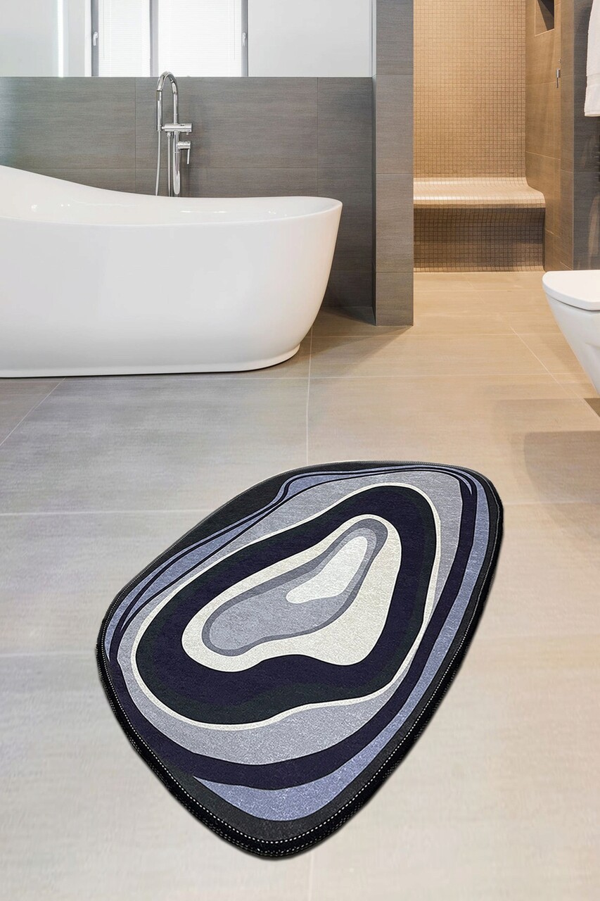 Covoras de baie, Chilai, Piedra, 70x120 cm, Poliester, Gri / Violet / Liliac