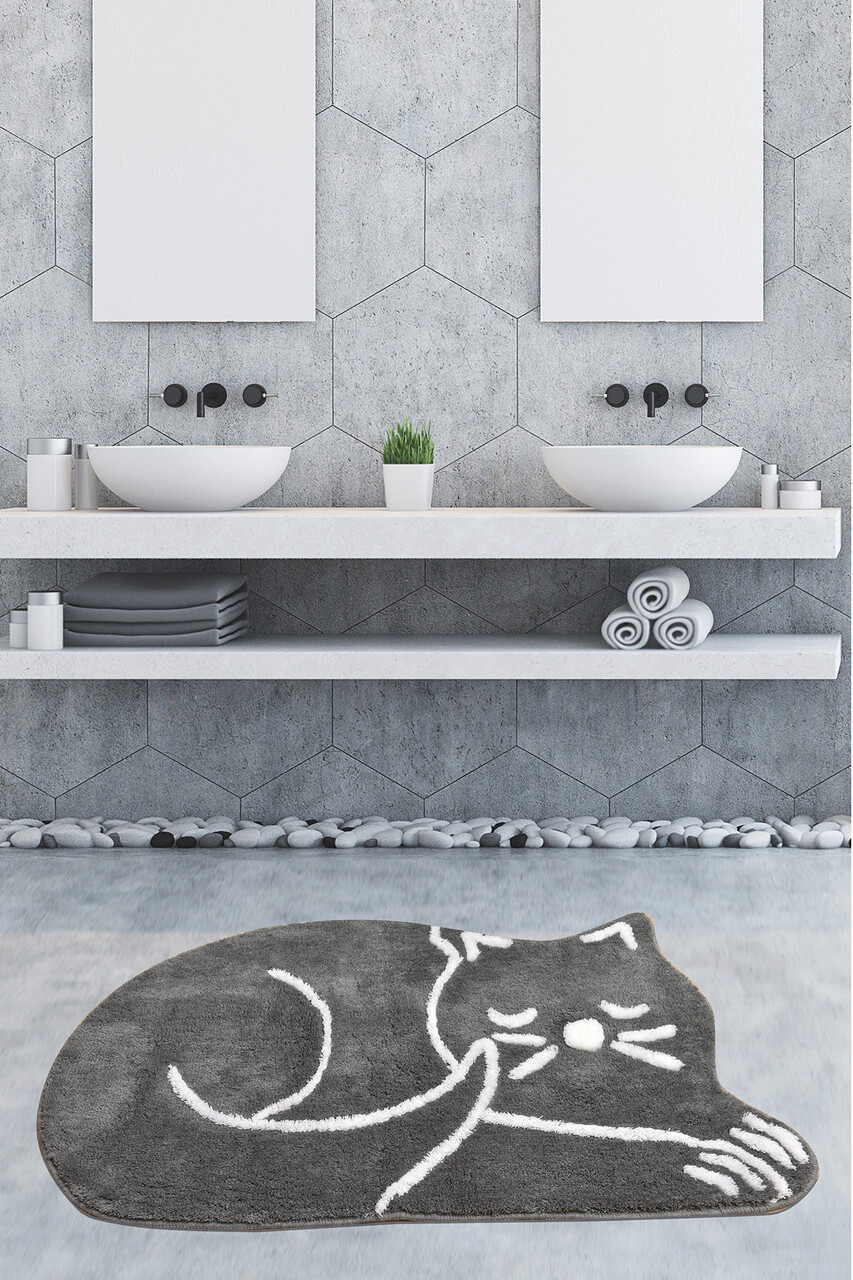 Covoras de baie, Chilai, Sleeping Cat, 70x120 cm, Acril, Gri