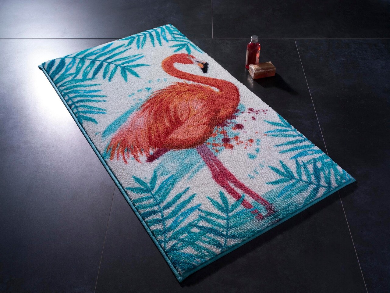 Covoras de baie Flamingo, Confetti, 80x140 cm, turcoaz