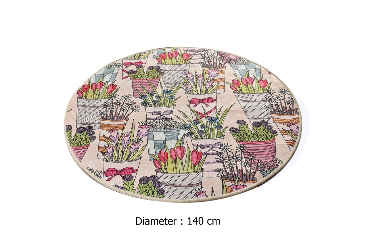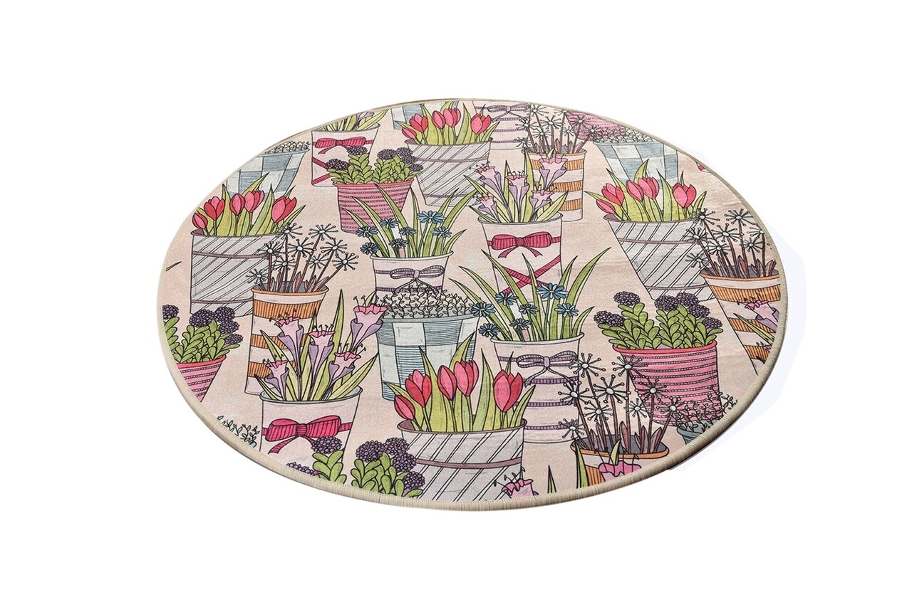 Covoras de baie Flowepot, Chilai, Ø140 cm, multicolor