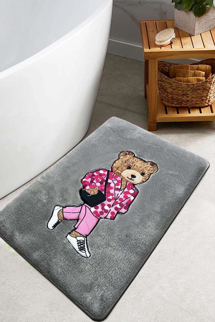 Covoras de baie, L'essentiel Maison, Boss Bear, 60x100 cm, Poliester, Fumuriu