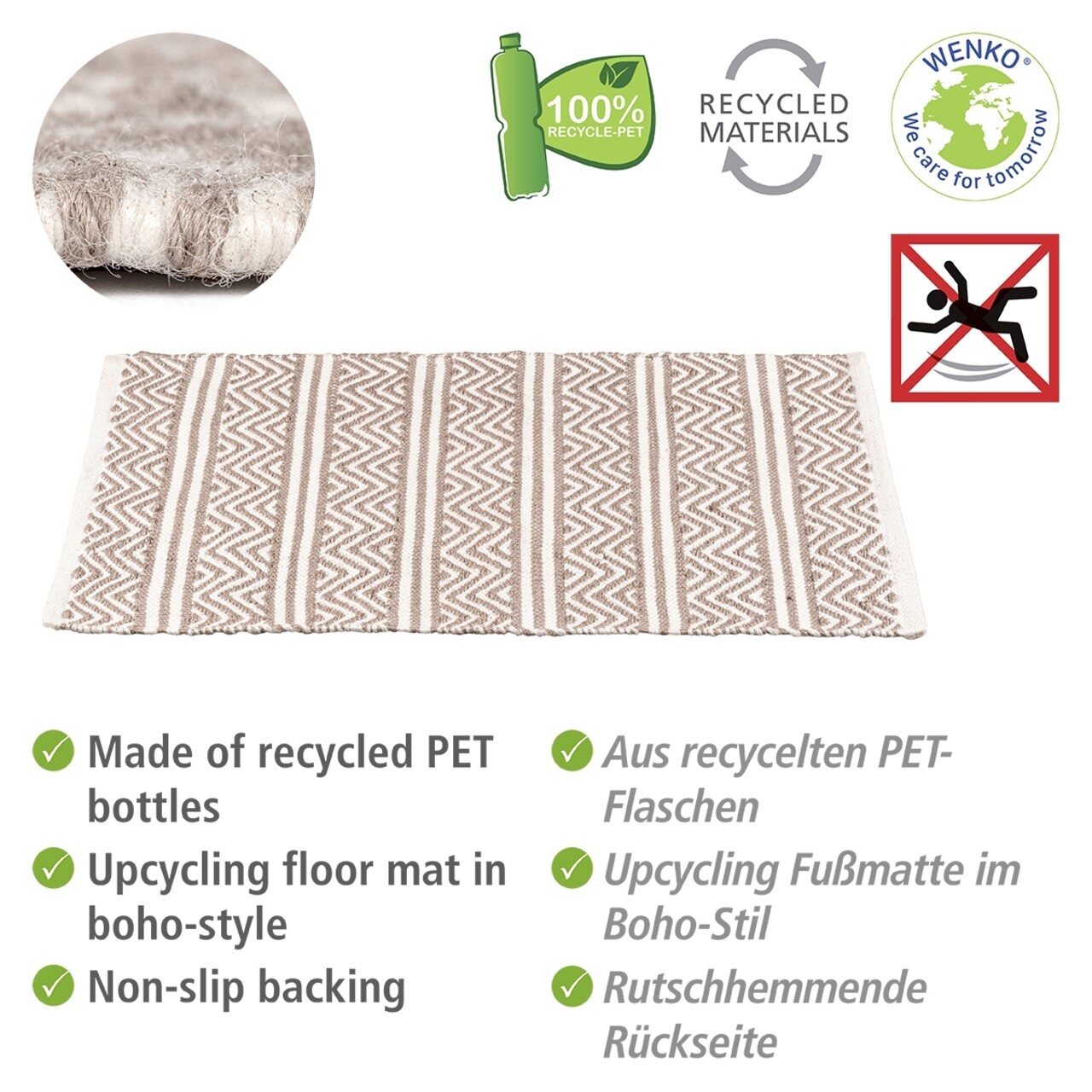 Covoras de baie Rug Shaki, Wenko, 50x80x0.8 cm, plastic/poliester, bej/alb