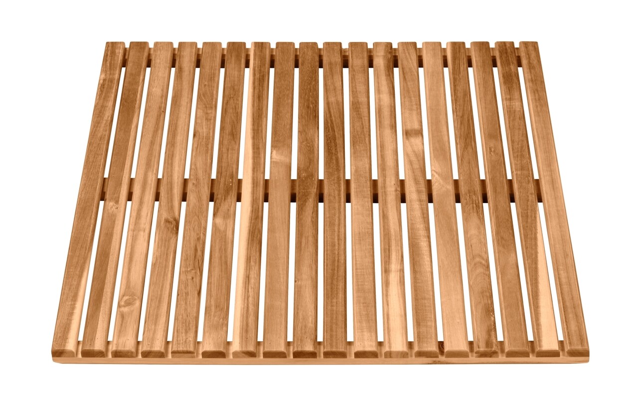 Fabricat din lemn masiv de salcam. Ideal pentru baie, dus, sauna si, de asemenea, pentru zona piscinei. Suport anti-alunecare.