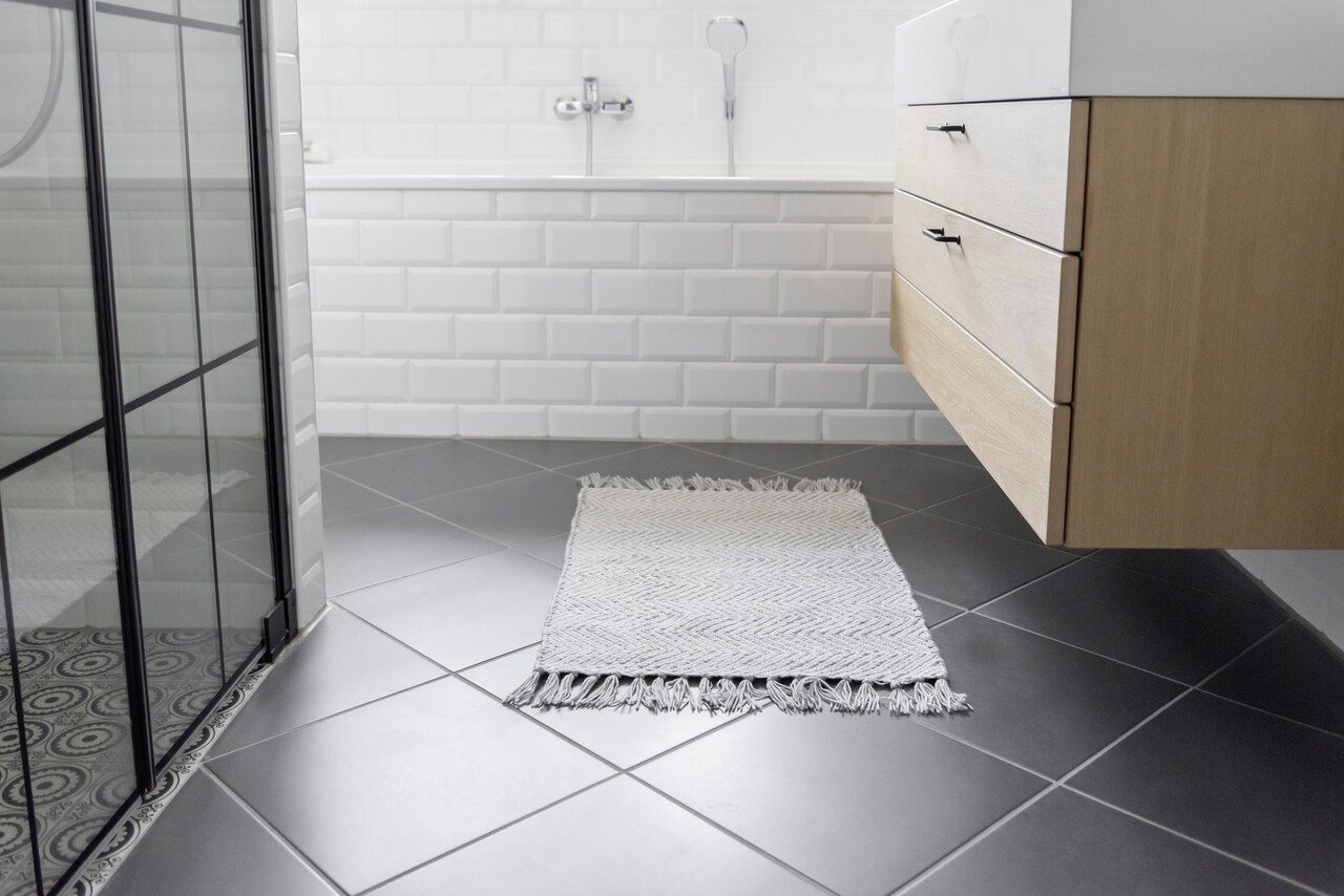 Covoras de baie, Wenko, Gata, 50 x 80 cm, poliester, gri