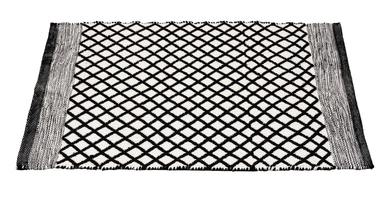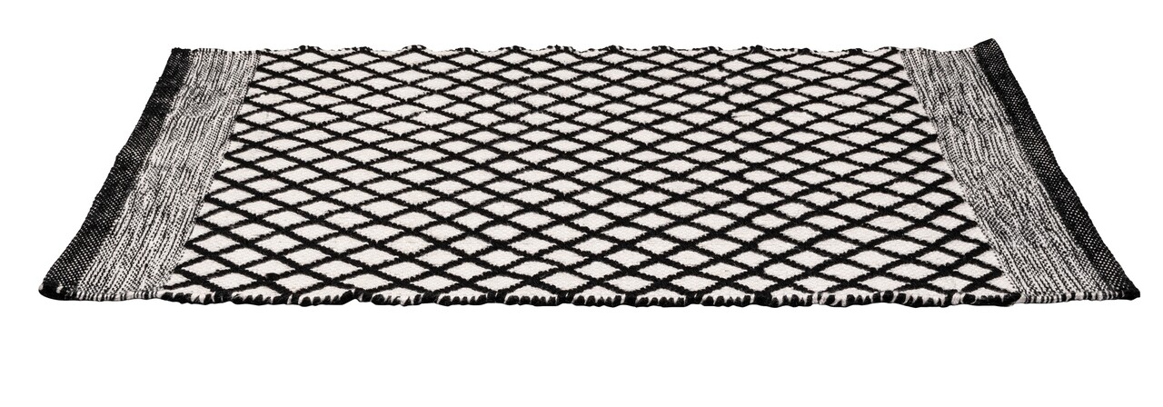 Covor in stil etno la moda realizat din cca. 18 sticle PET reciclate, 100% poliester. Spate anti-alunecare. Rezistent la incalzirea prin pardoseala. Se poate spala pana la 40°C. Greutate: 1350 g/m².