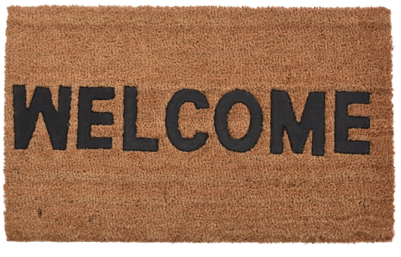 Covoras de intrare din fibra de cocos, 45x75 cm, Welcome, maro/negru
