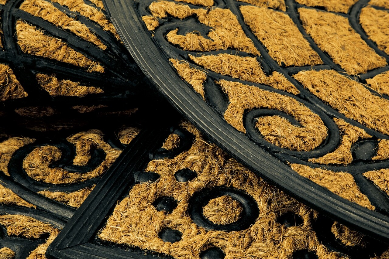 Covoras de intrare, Olivo Tappeti, Promo Mezzaluna 4, Welcome, 40 x 60 cm, cauciuc/fibra cocos, maro/negru