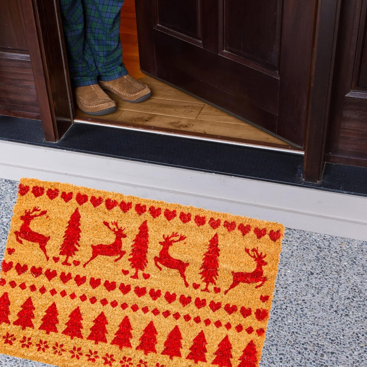 Covoras de intrare Reindeer, 39x59 cm, fibra de cocos, maro