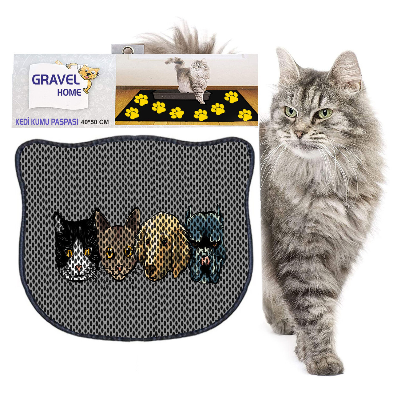 Covoras litiera pentru colectarea granulelor de nisip, Paws & Whiskers, Kdkafa0022, 50% PVC/50% poliester, Multicolor