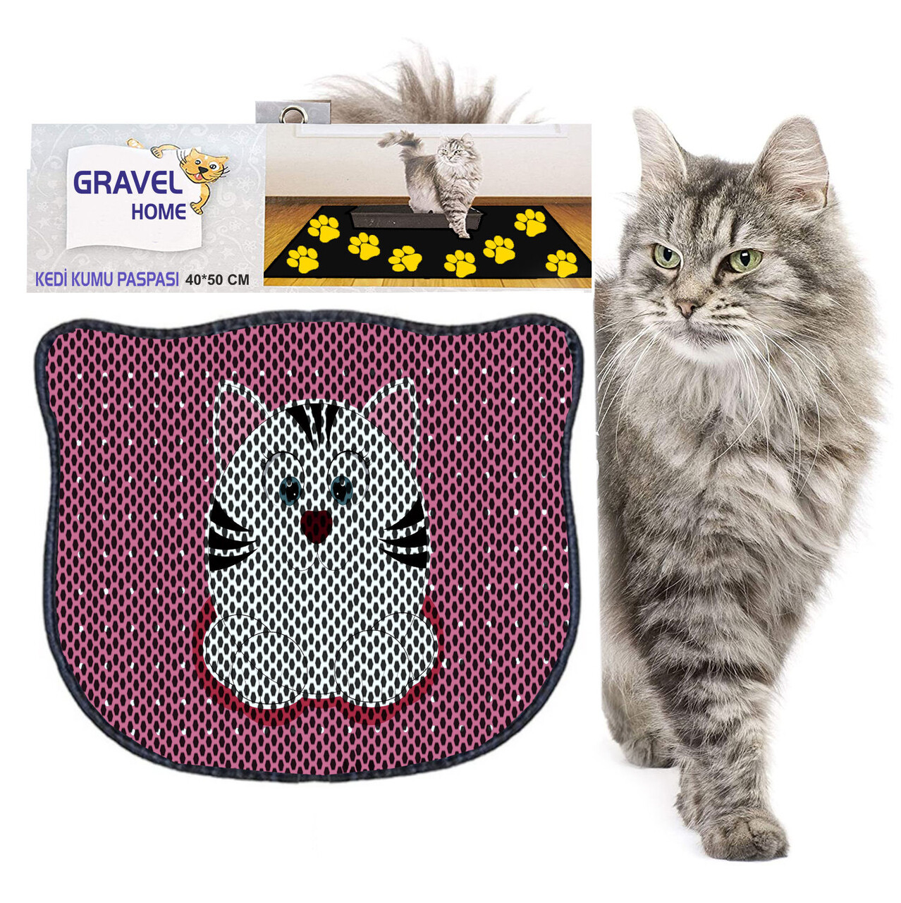 Covoras litiera pentru colectarea granulelor de nisip, Paws & Whiskers, Kdkafa0025, 50% PVC/50% poliester, Multicolor
