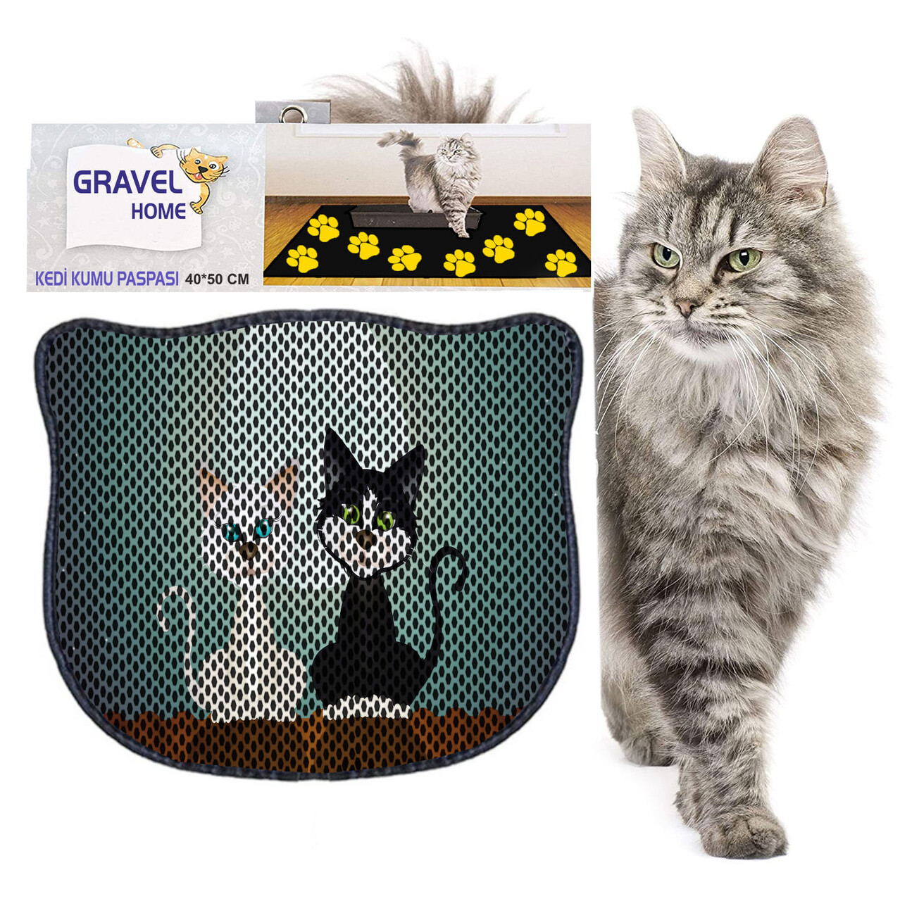 Covoras litiera pentru colectarea granulelor de nisip, Paws & Whiskers, Kdkafa0026, 50% PVC/50% poliester, Multicolor