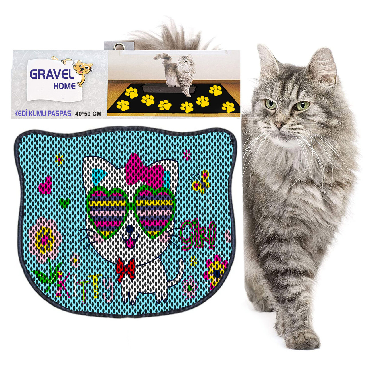 Covoras litiera pentru colectarea granulelor de nisip, Paws & Whiskers, Kdkafa0048, 50% PVC/50% poliester, Multicolor