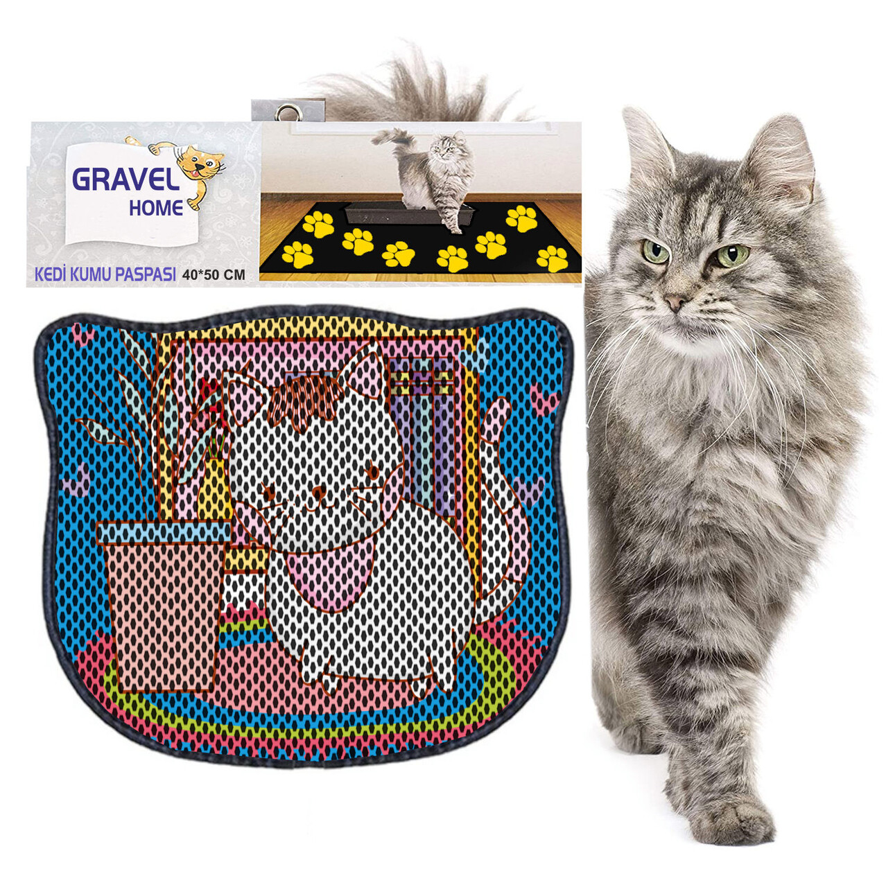 Covoras litiera pentru colectarea granulelor de nisip, Paws & Whiskers, Kdkafa0053, 50% PVC/50% poliester, Multicolor