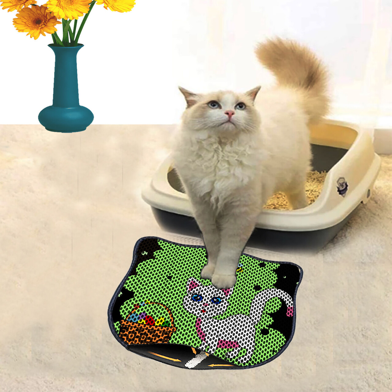 Covoras litiera pentru colectarea granulelor de nisip, Paws & Whiskers, Kdkafa0056, 50% PVC/50% poliester, Multicolor