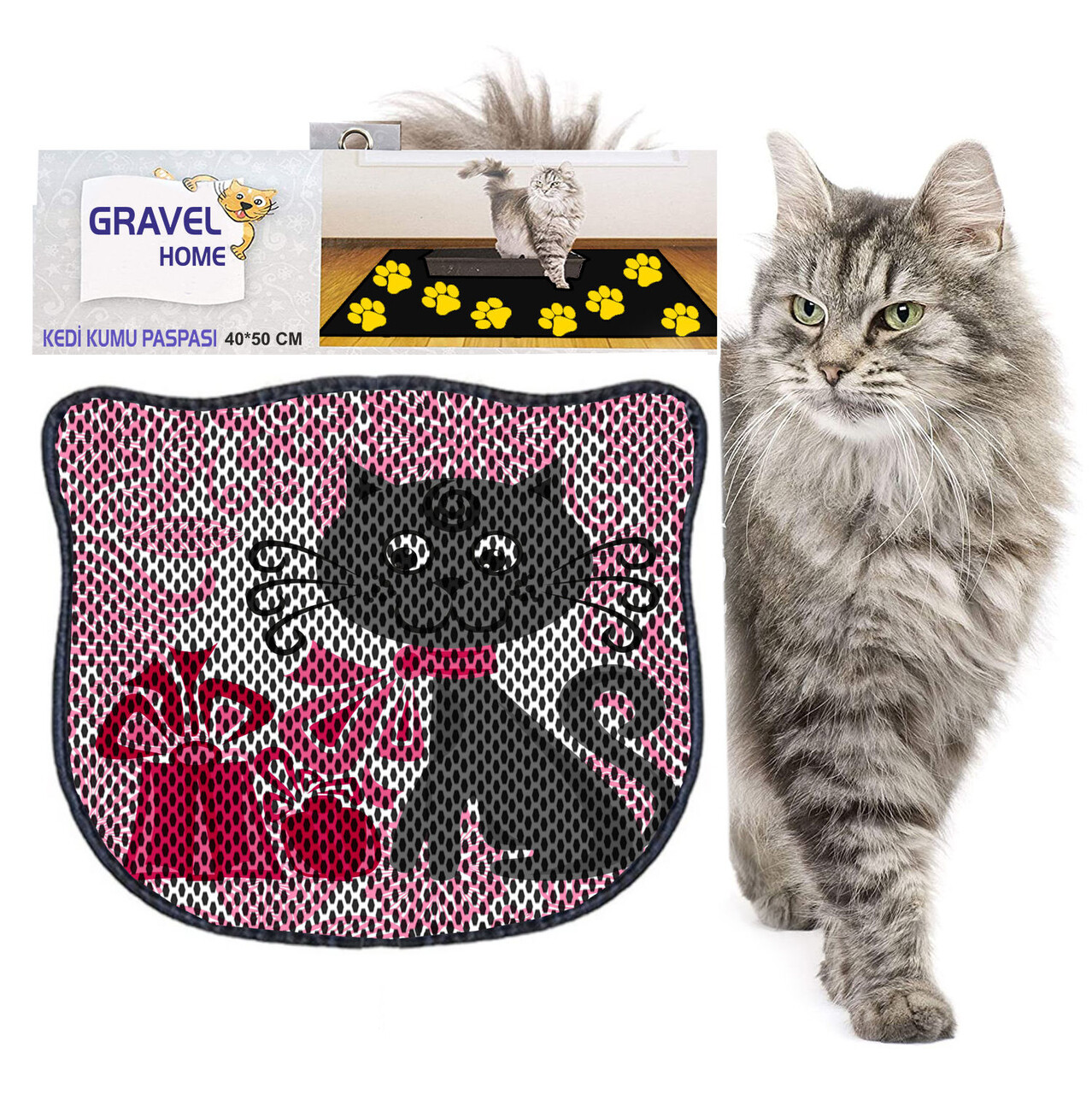 Covoras litiera pentru colectarea granulelor de nisip, Paws & Whiskers, Kdkafa0058, 50% PVC/50% poliester, Multicolor