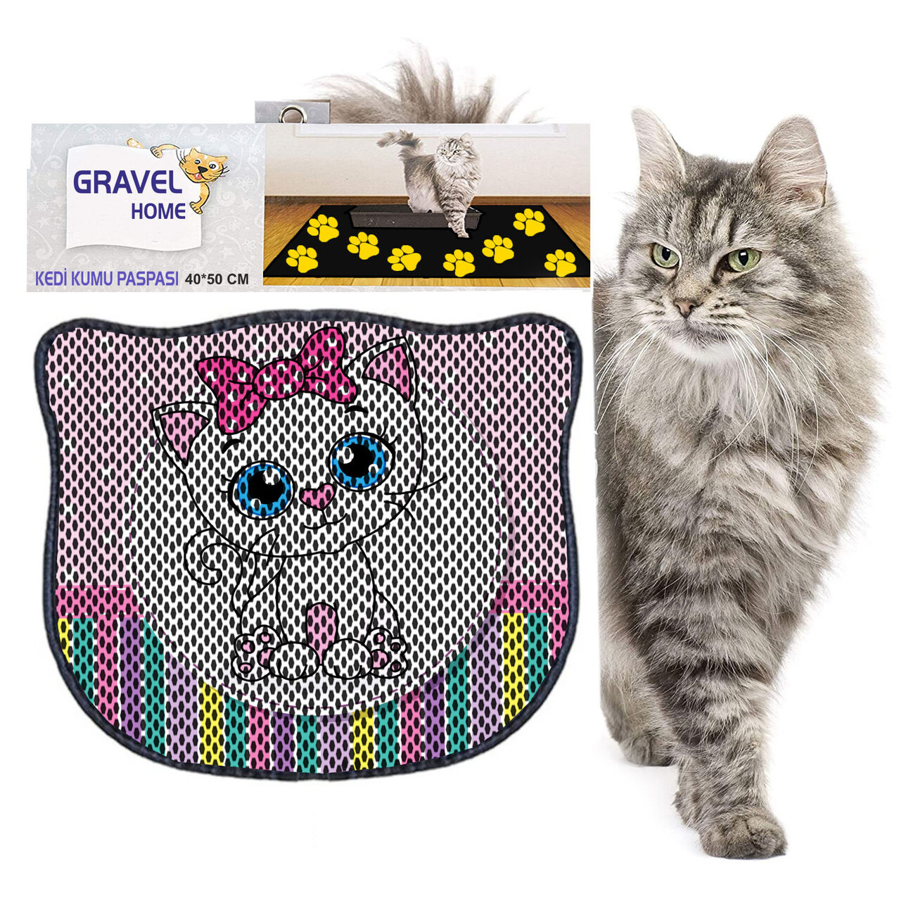 Covoras litiera pentru colectarea granulelor de nisip, Paws & Whiskers, Kdkafa0068, 50% PVC/50% poliester, Multicolor