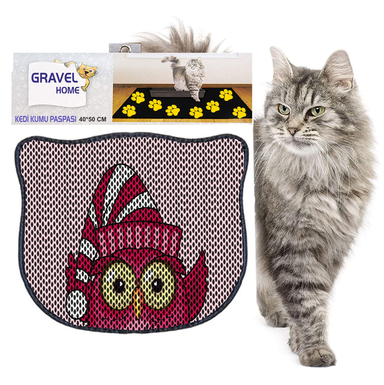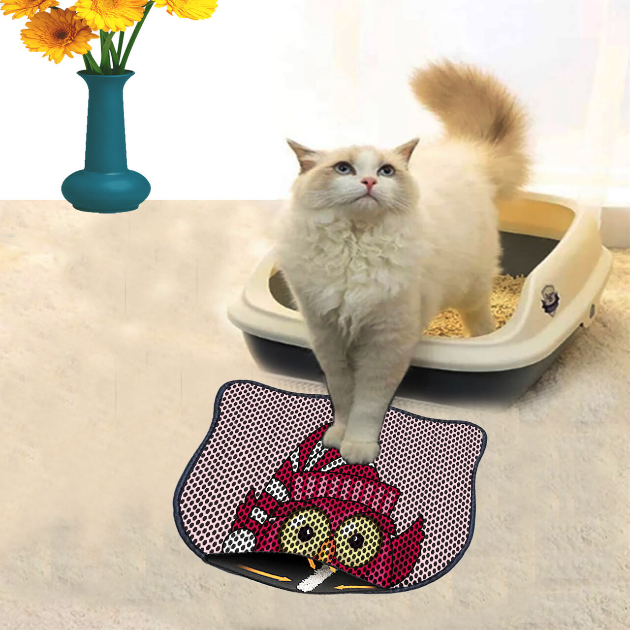 Covoras litiera pentru colectarea granulelor de nisip, Paws & Whiskers, Kdkafa0082, 50% PVC/50% poliester, Multicolor