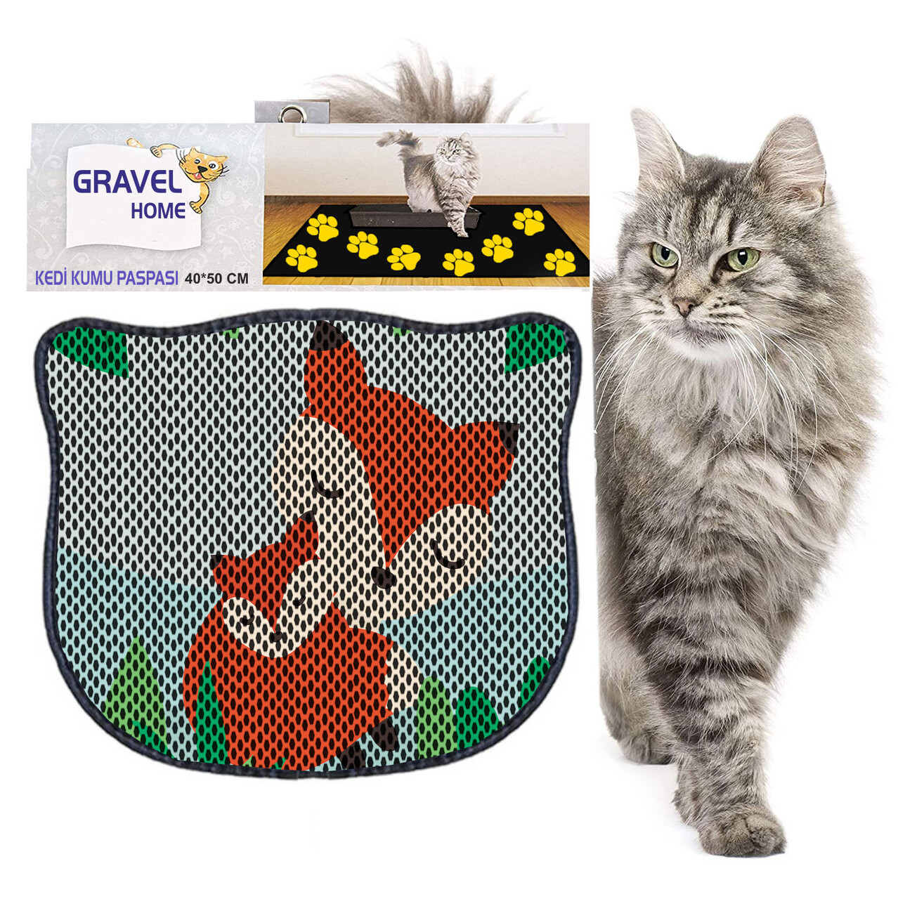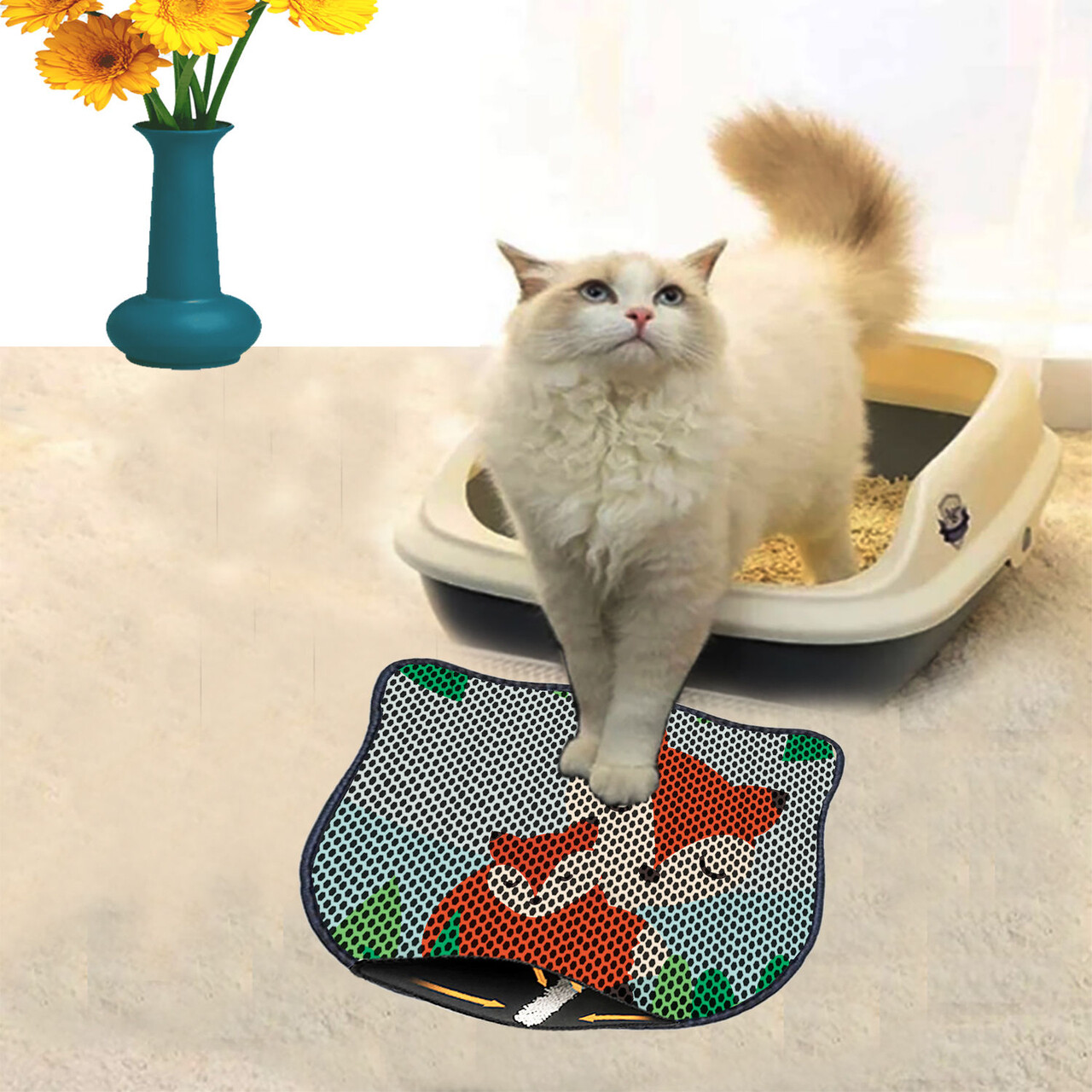 Covoras litiera pentru colectarea granulelor de nisip, Paws & Whiskers, Kdkafa0097, 50% PVC/50% poliester, Multicolor