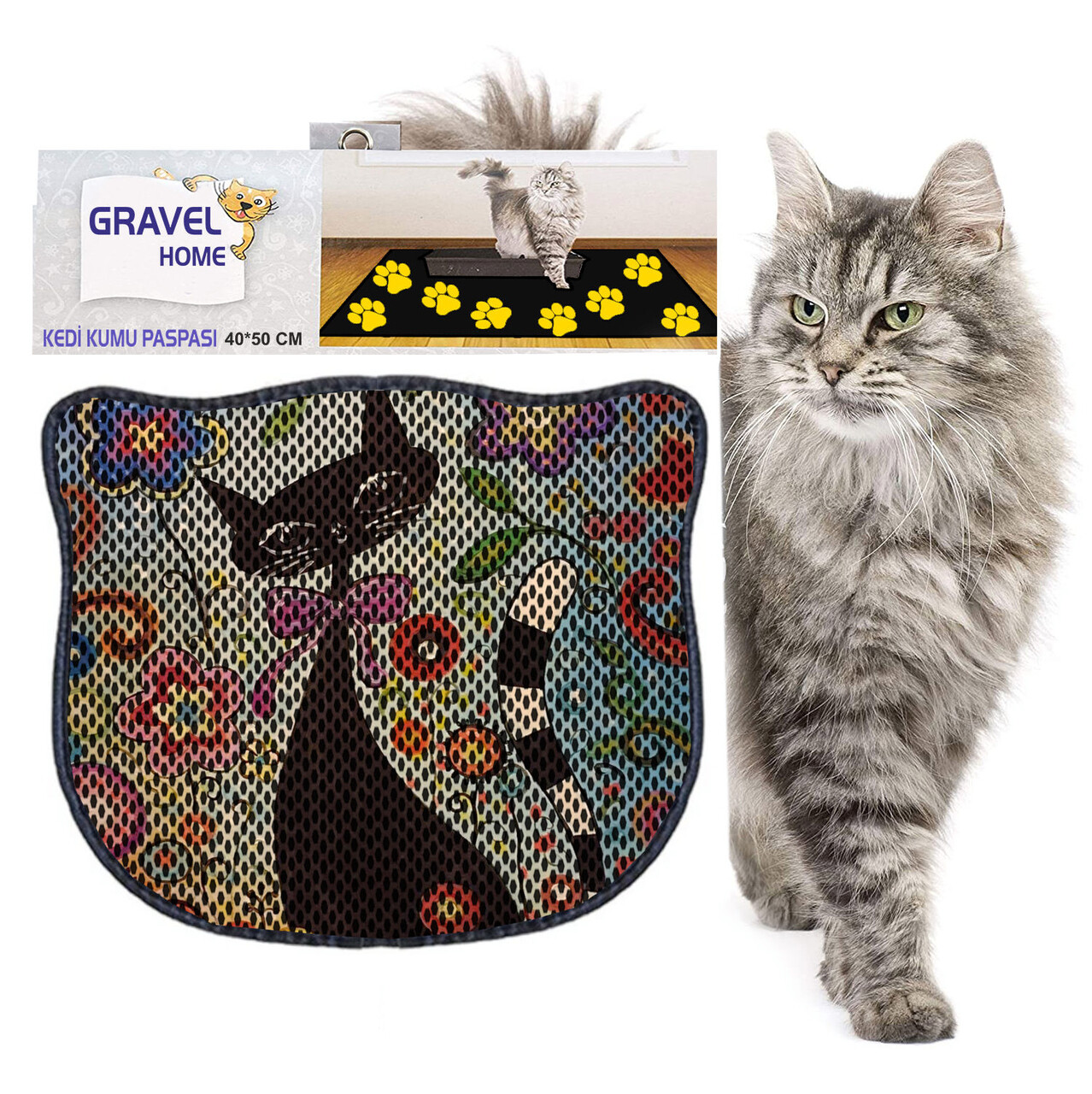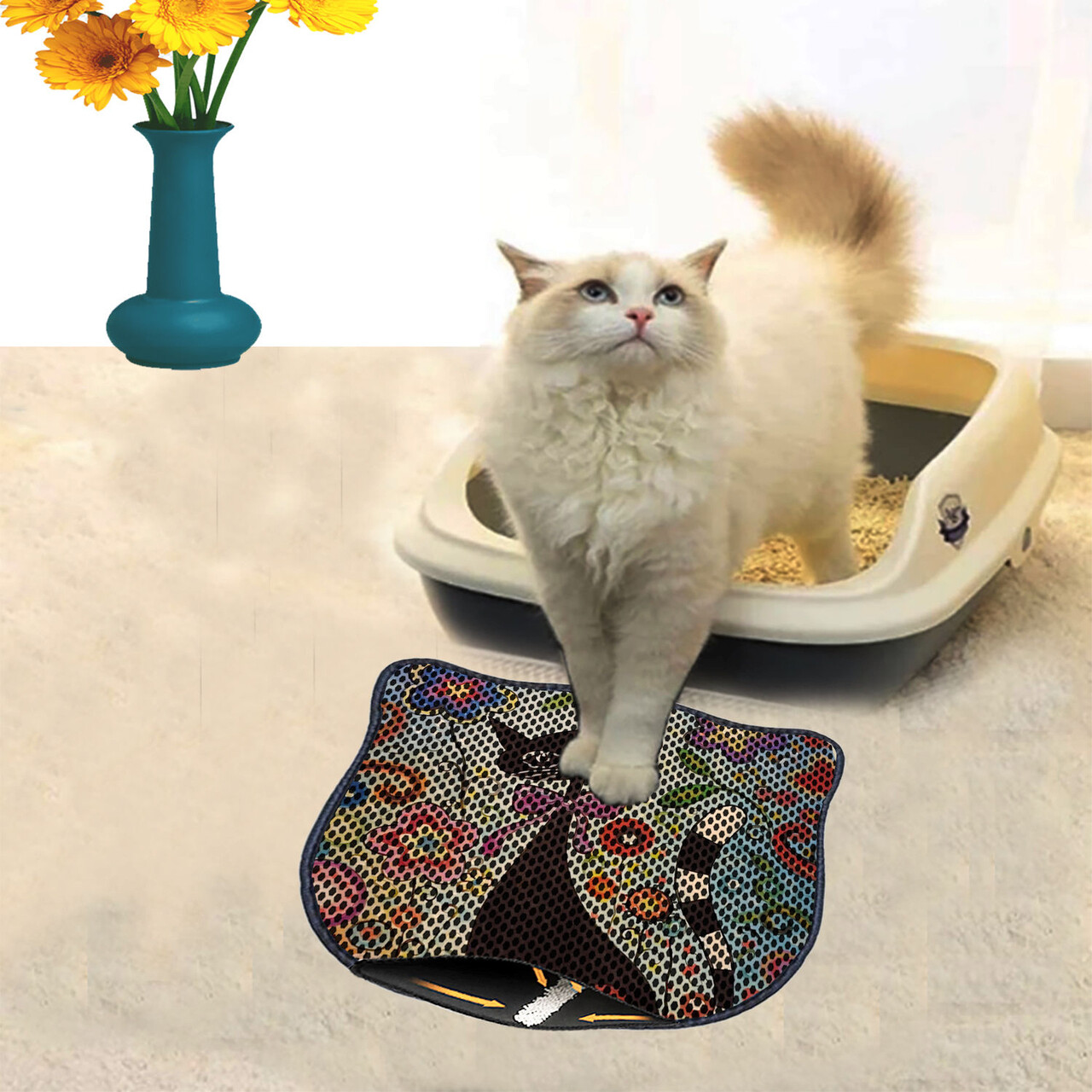 Covoras litiera pentru colectarea granulelor de nisip, Paws & Whiskers, Kdkafa0110, 50% PVC/50% poliester, Multicolor