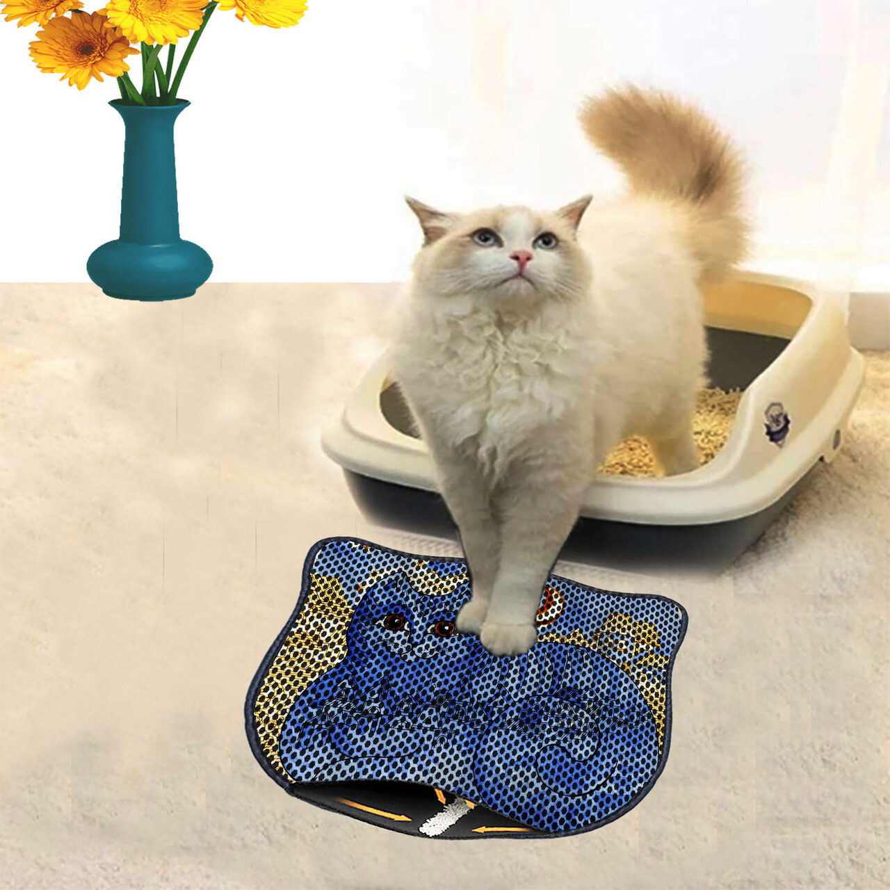 Covoras litiera pentru colectarea granulelor de nisip, Paws & Whiskers, Kdkafa0117, 50% PVC/50% poliester, Multicolor
