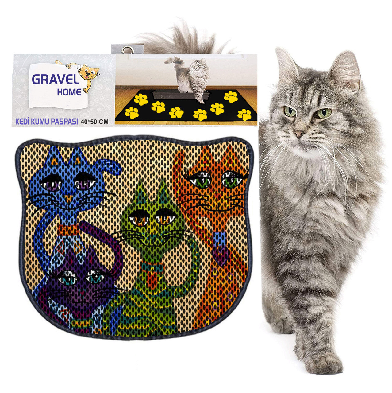Covoras litiera pentru colectarea granulelor de nisip, Paws & Whiskers, Kdkafa0120, 50% PVC/50% poliester, Multicolor