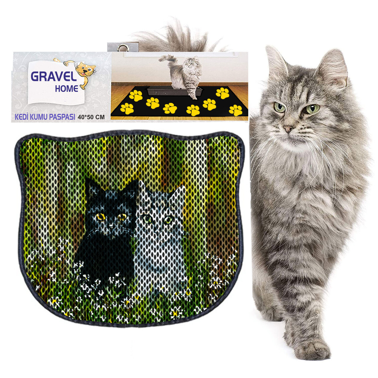 Covoras litiera pentru colectarea granulelor de nisip, Paws & Whiskers, Kdkafa0124, 50% PVC/50% poliester, Multicolor