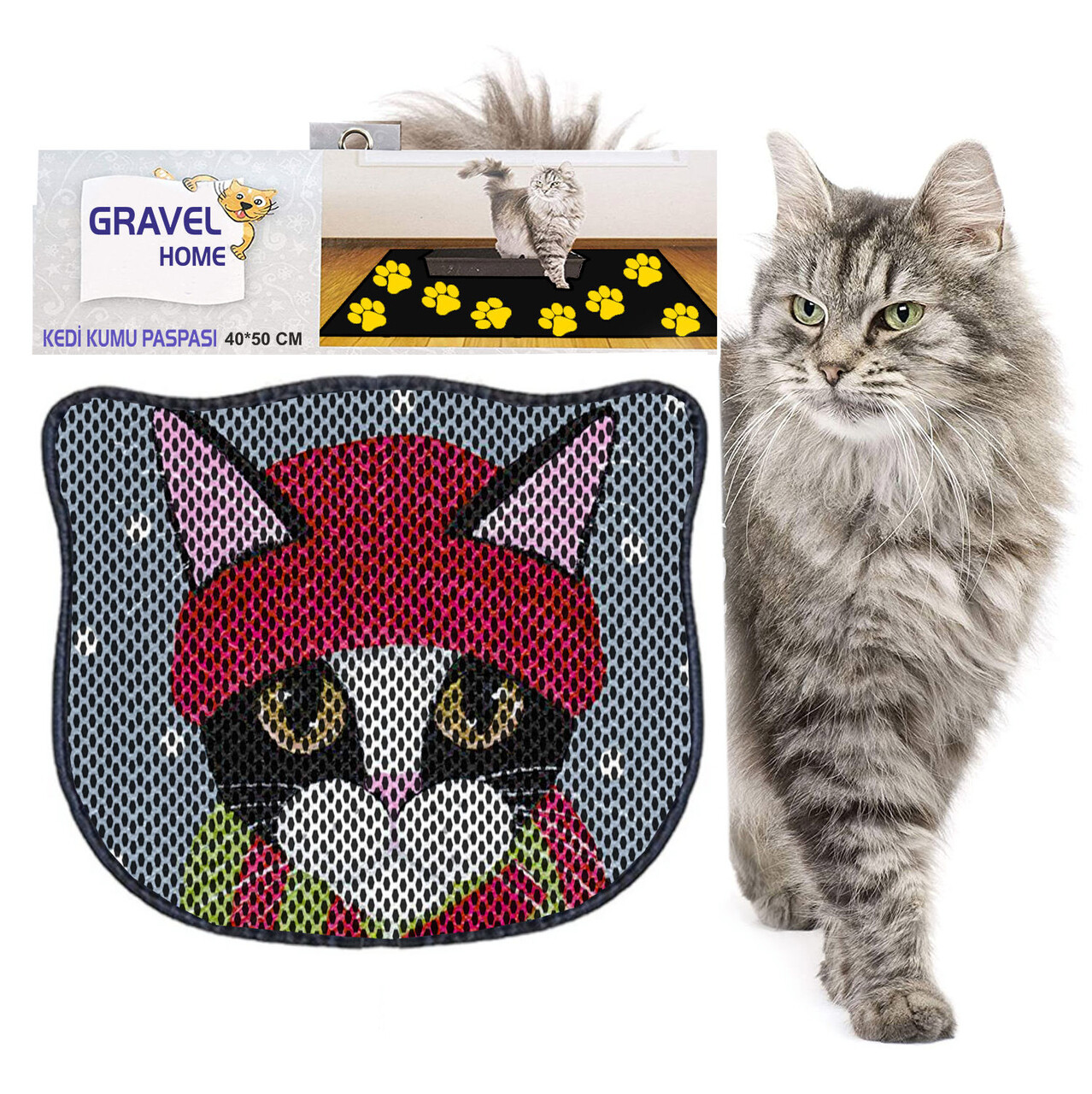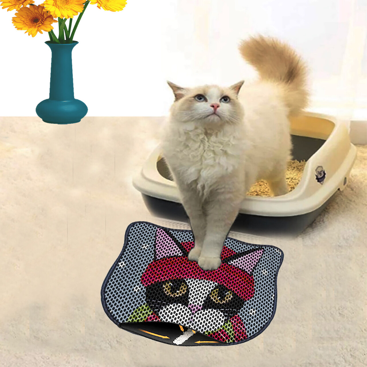 Covoras litiera pentru colectarea granulelor de nisip, Paws & Whiskers, Kdkafa0174, 50% PVC/50% poliester, Multicolor