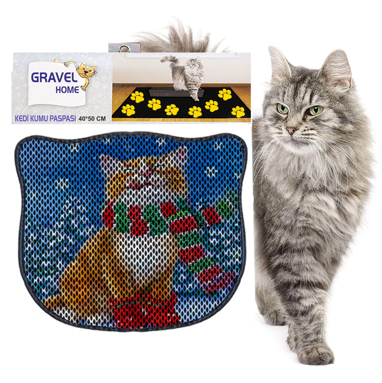 Covoras litiera pentru colectarea granulelor de nisip, Paws & Whiskers, Kdkafa0176, 50% PVC/50% poliester, Multicolor